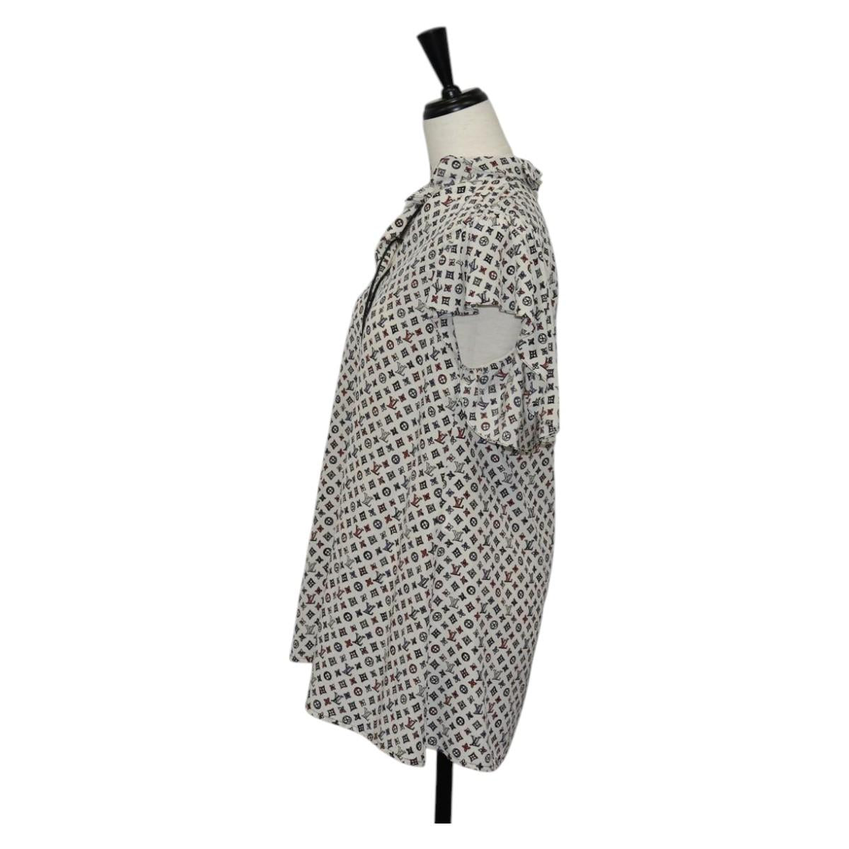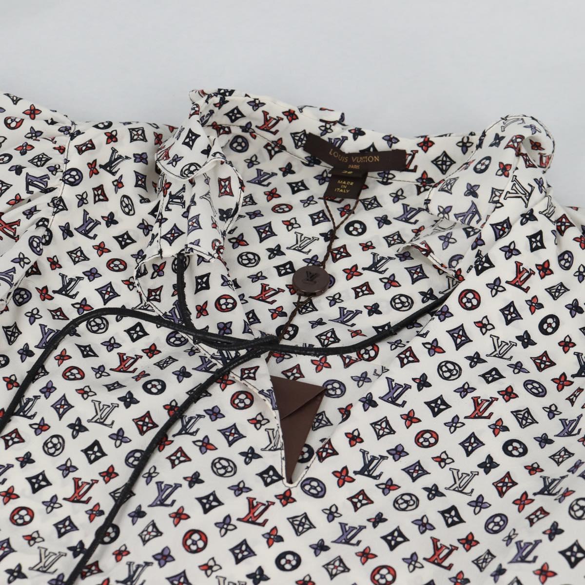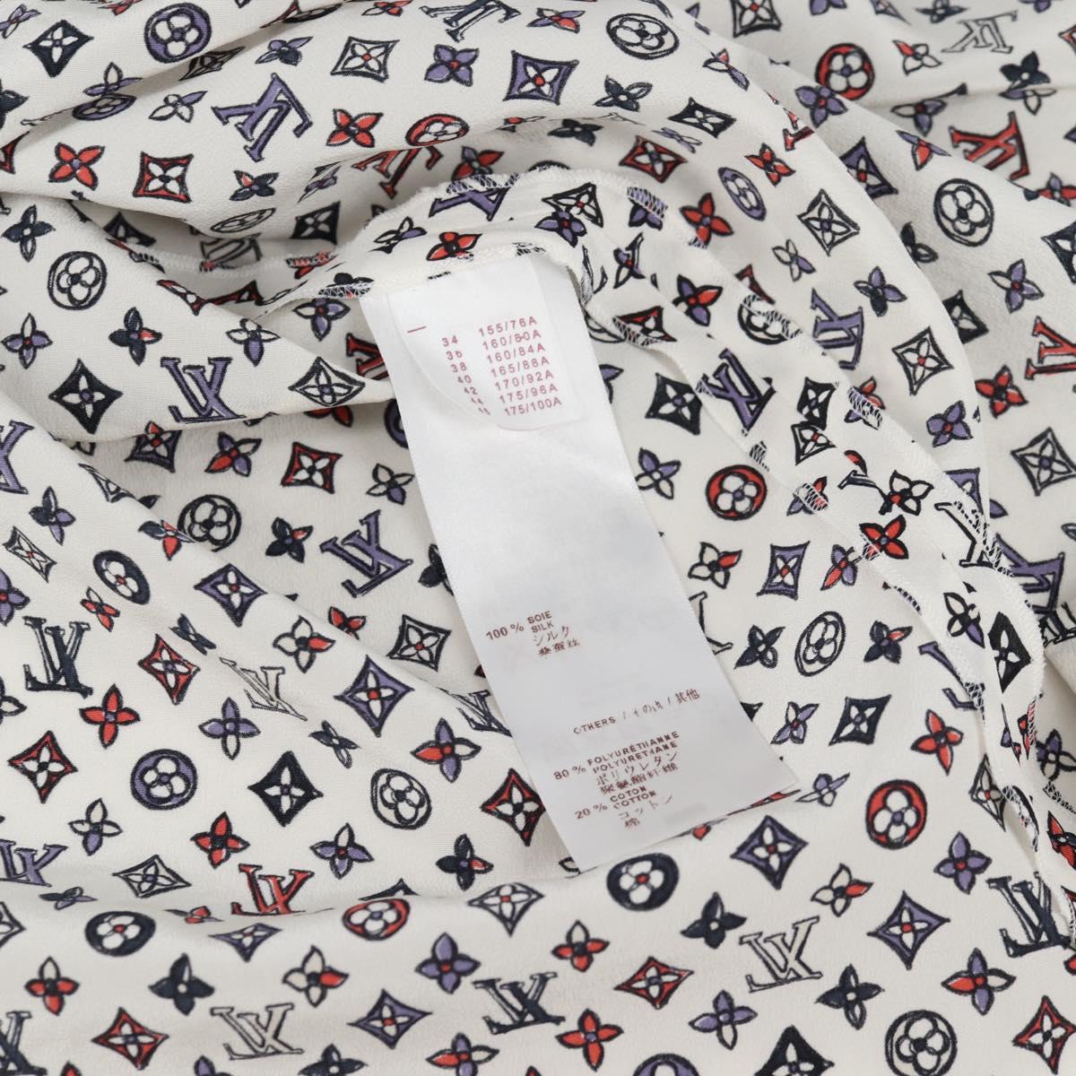LOUIS VUITTON Blouse Shirt Silk White LV Auth 137476M