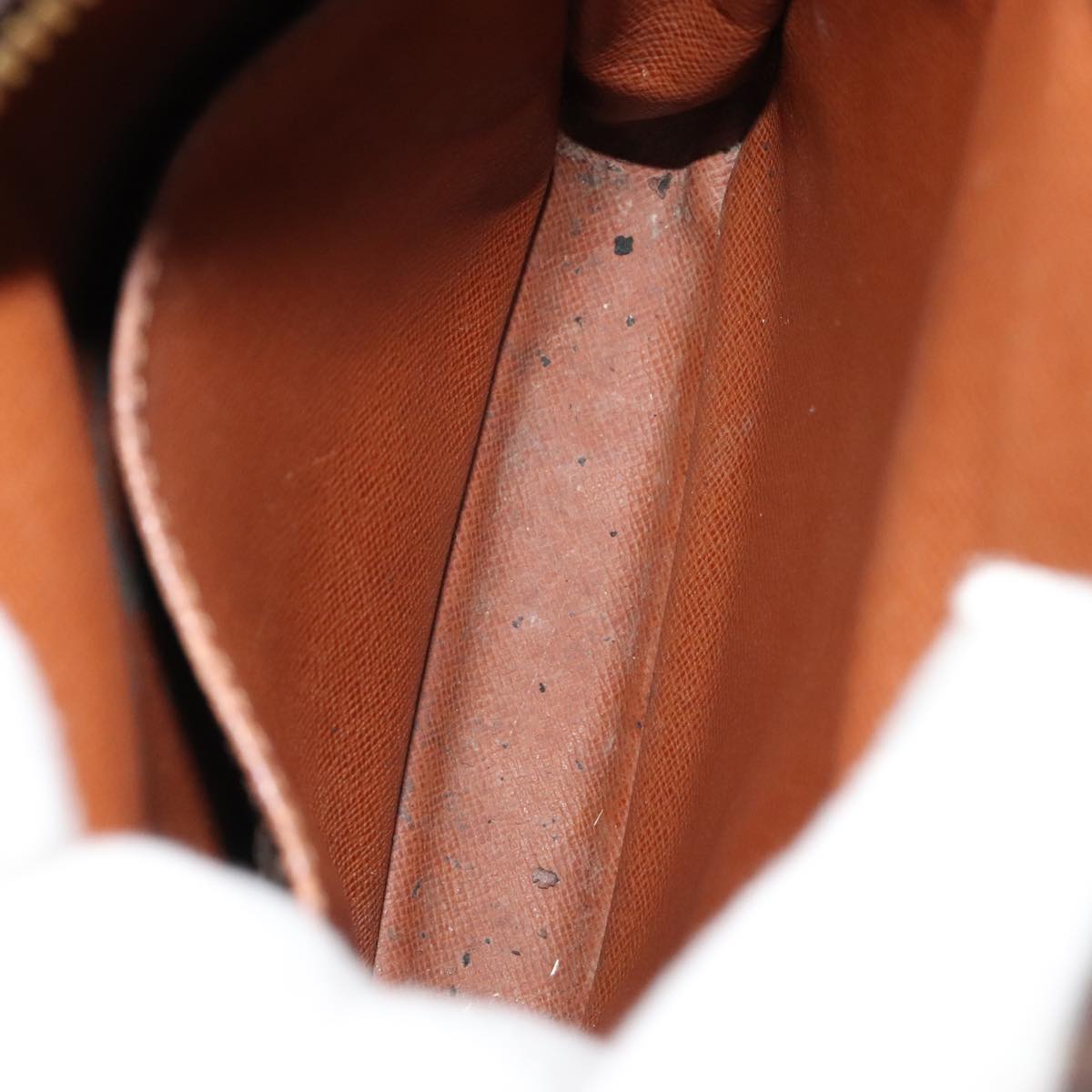 Surface:lose shape , rubbing Leather:sun burn , rubbing , stain Shoulder Strap:rubbing , out of shape Metal fittings:scratches , painting off |