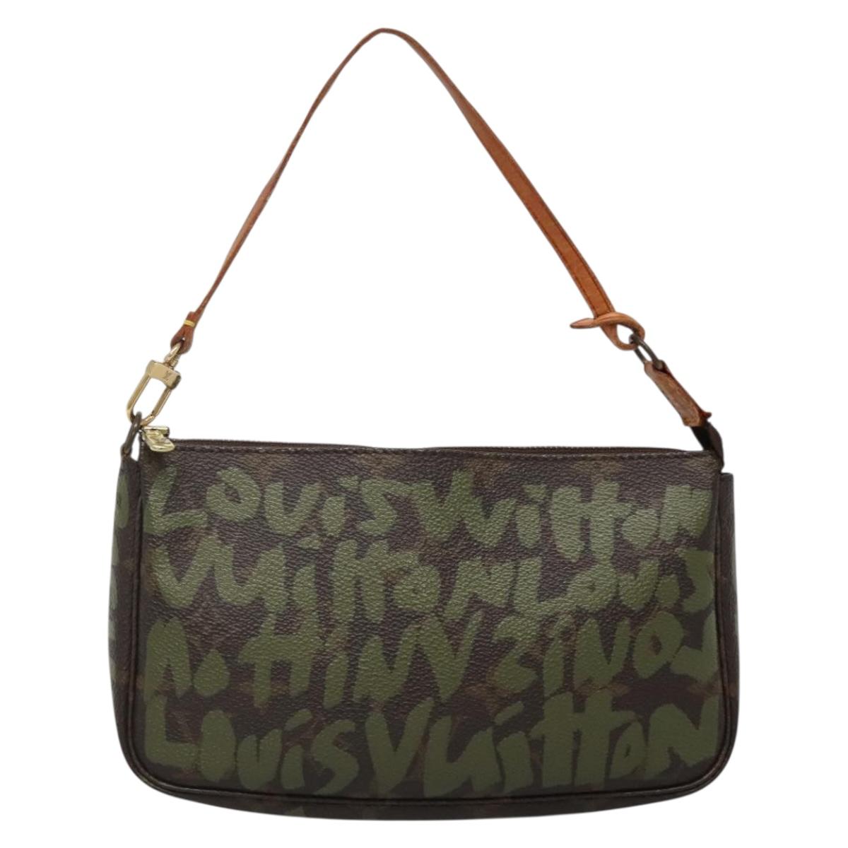 LOUIS VUITTON Graffiti Pochette Accessoires Pouch Khaki M92191 LV Auth bs28566