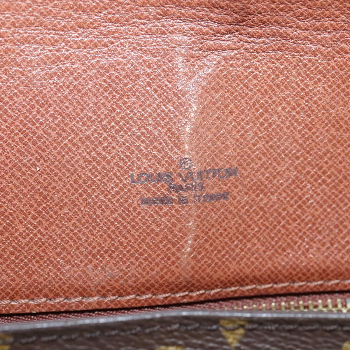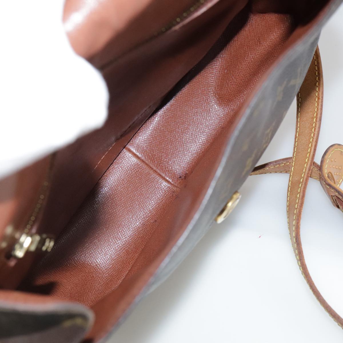 Surface:lose shape , rubbing , partly crack Leather:sun burn , rubbing , stain Shoulder Strap:sun burn, rubbing, stain, out of shape, scratches Metal fittings:scratches , painting off |
