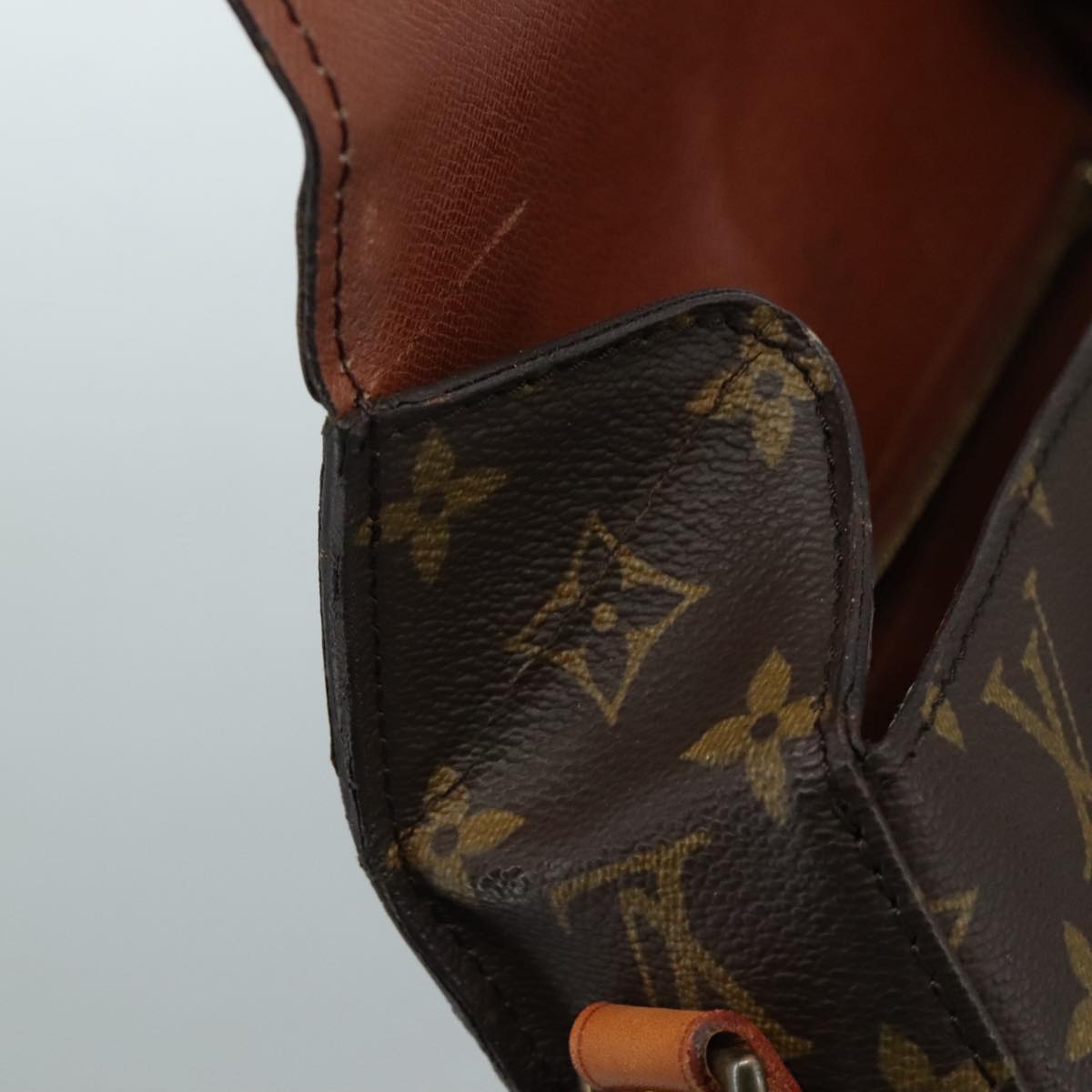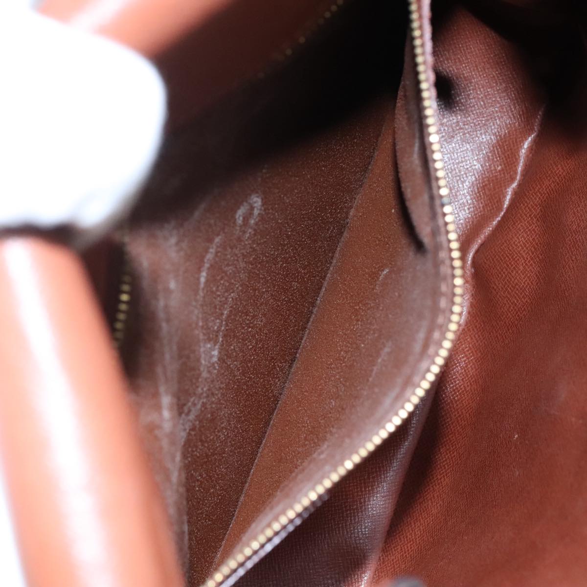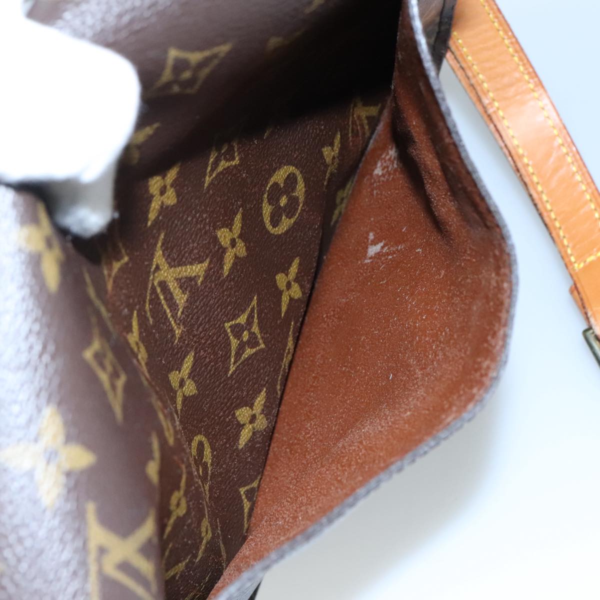 Surface:rubbing , slight lose shape , partly crack Leather:sun burn , rubbing , stain Shoulder Strap:sun burn , rubbing , stain , out of shape , partly crack Metal fittings:scratches , painting off |