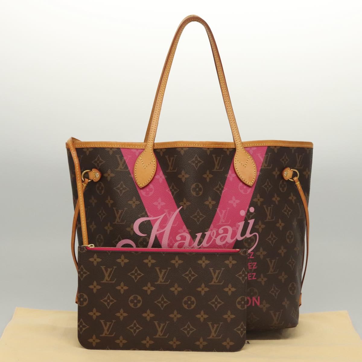 LOUIS VUITTON Monogram V Line Neverfull MM Tote Bag Pink LV Auth BD681A