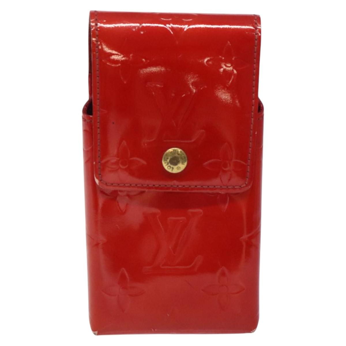LOUIS VUITTON Monogram Vernis Green Cigarette Case Red M91155 LV Auth 125436