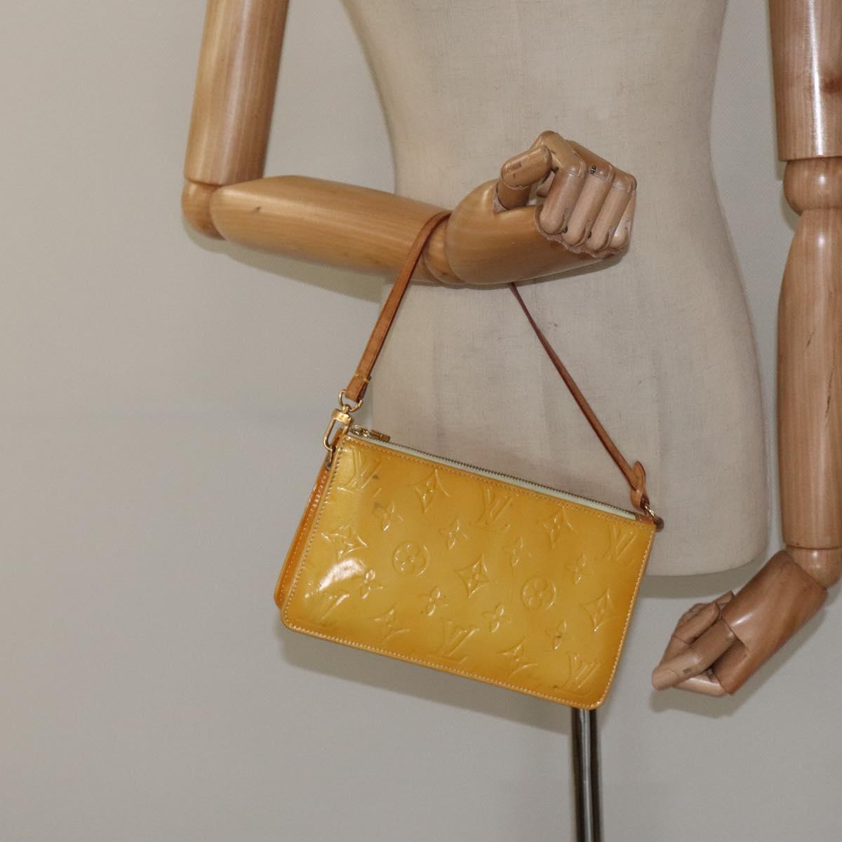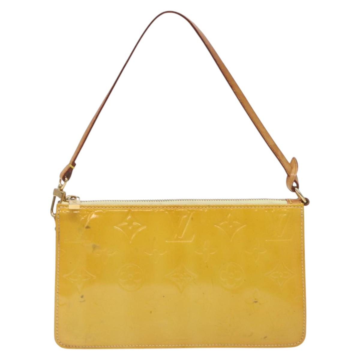 LOUIS VUITTON Vernis Lexington Accessory Pouch Lime Yellow M91058 Auth 120744