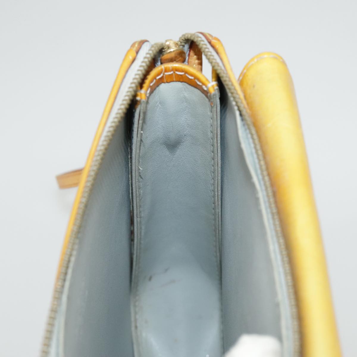Surface:rubbing , sun burn , discoloration , slight lose shape , color transfer , partly Peeling Leather:sun burn , rubbing , stain Handle:sun burn , rubbing , stain , out of shape , slight crack Metal fittings:scratches |