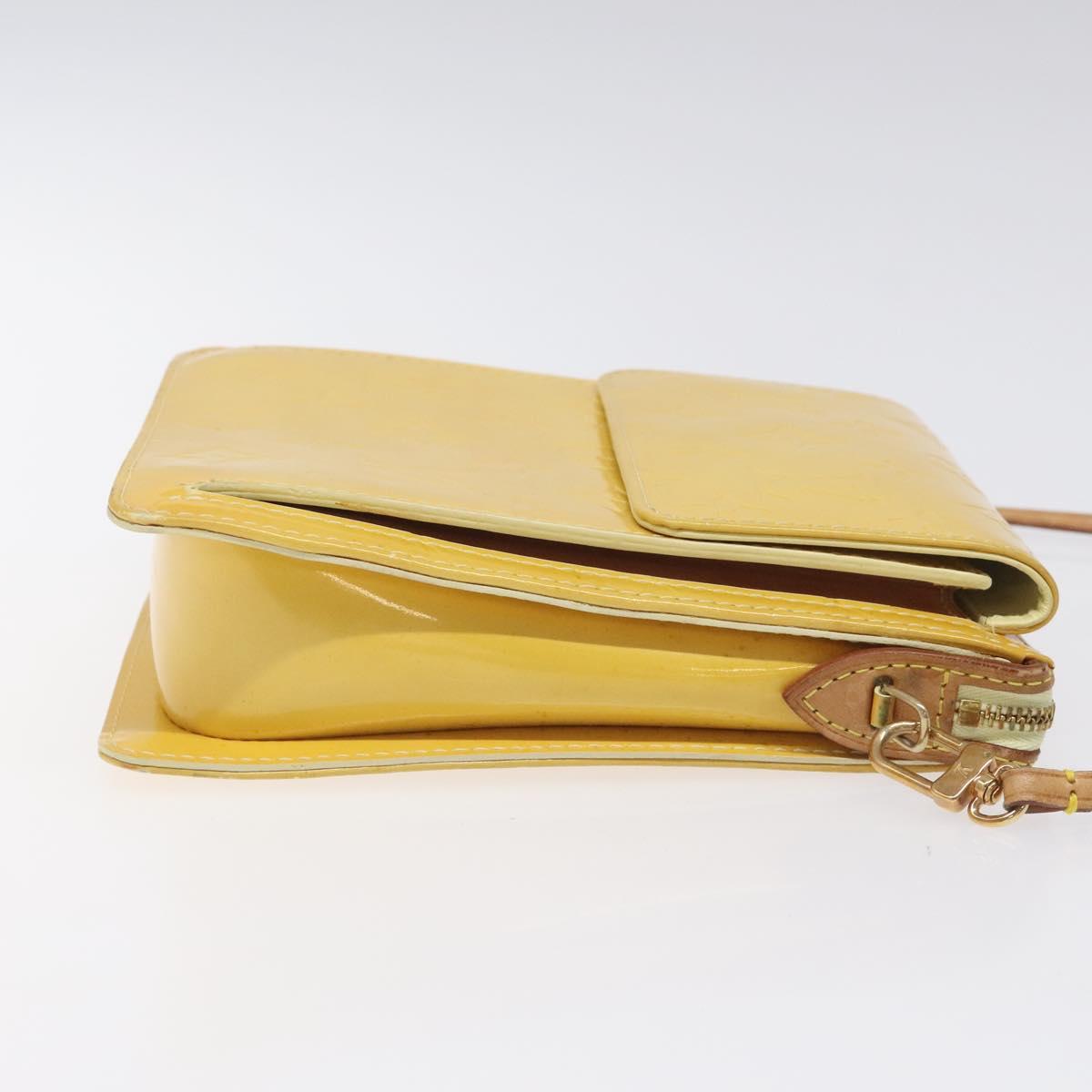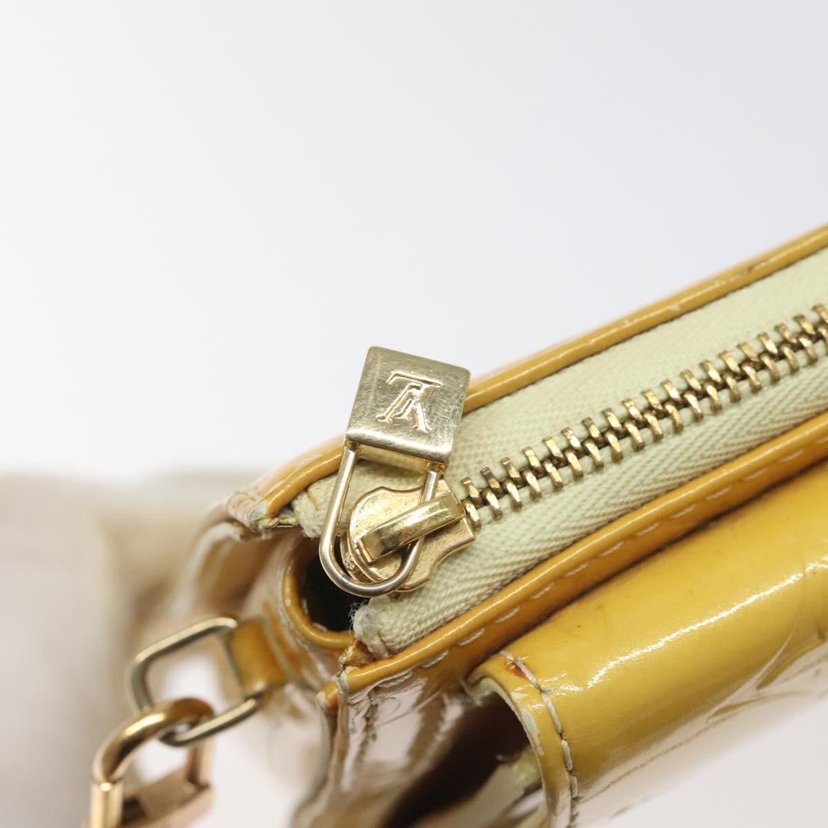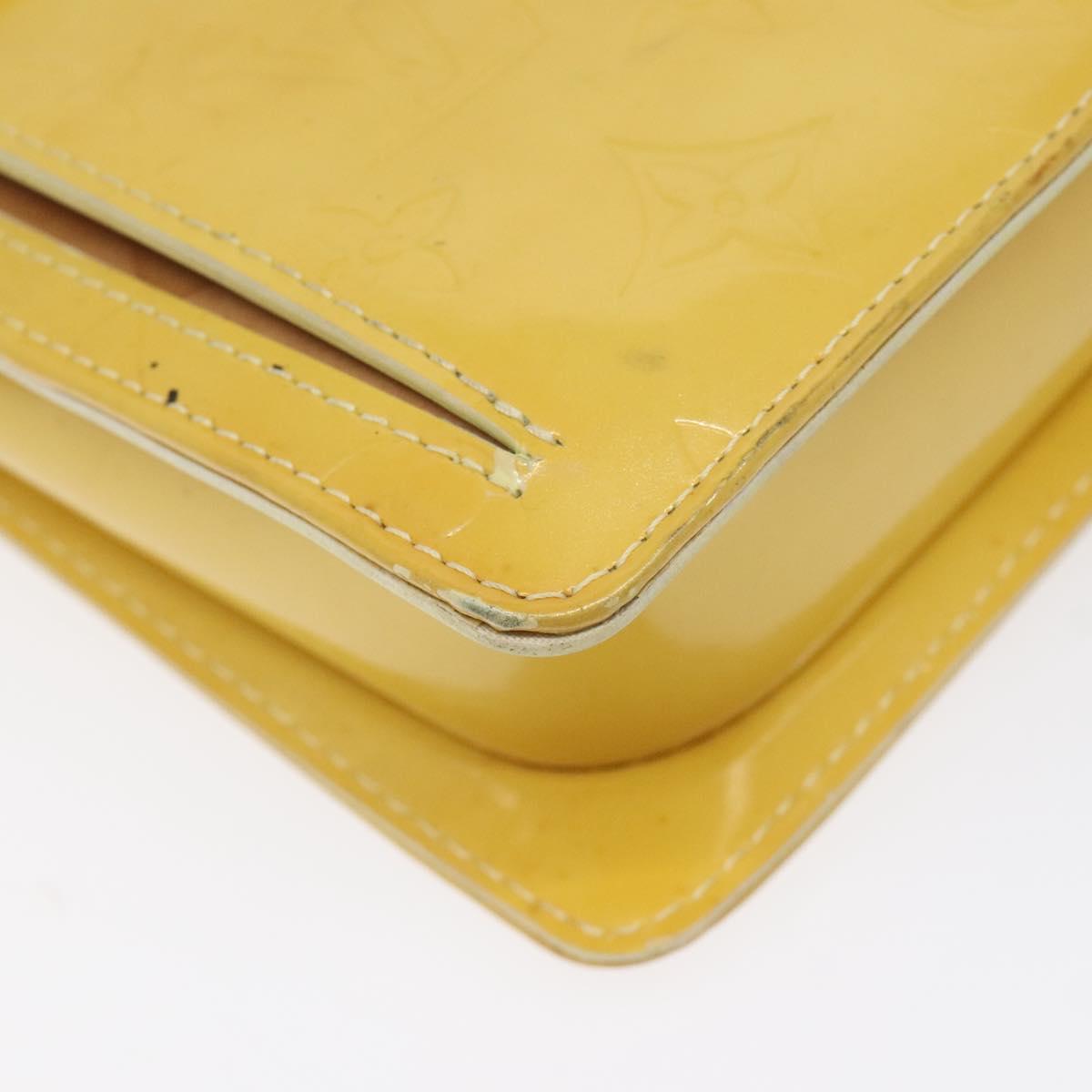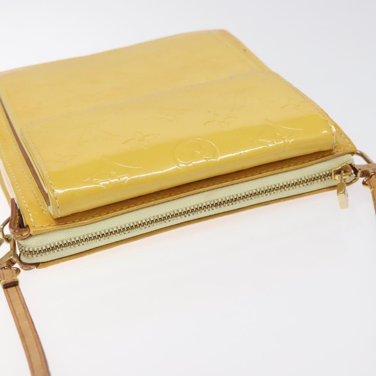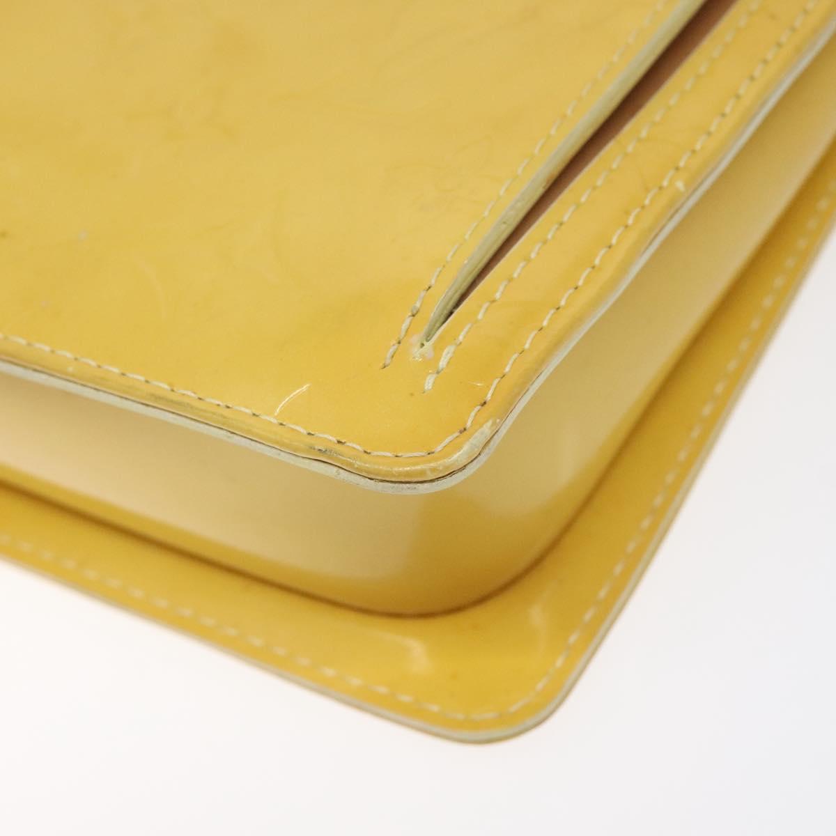 LOUIS VUITTON Monogram Vernis Motto Pouch Lime Yellow M91059 LV Auth EC064