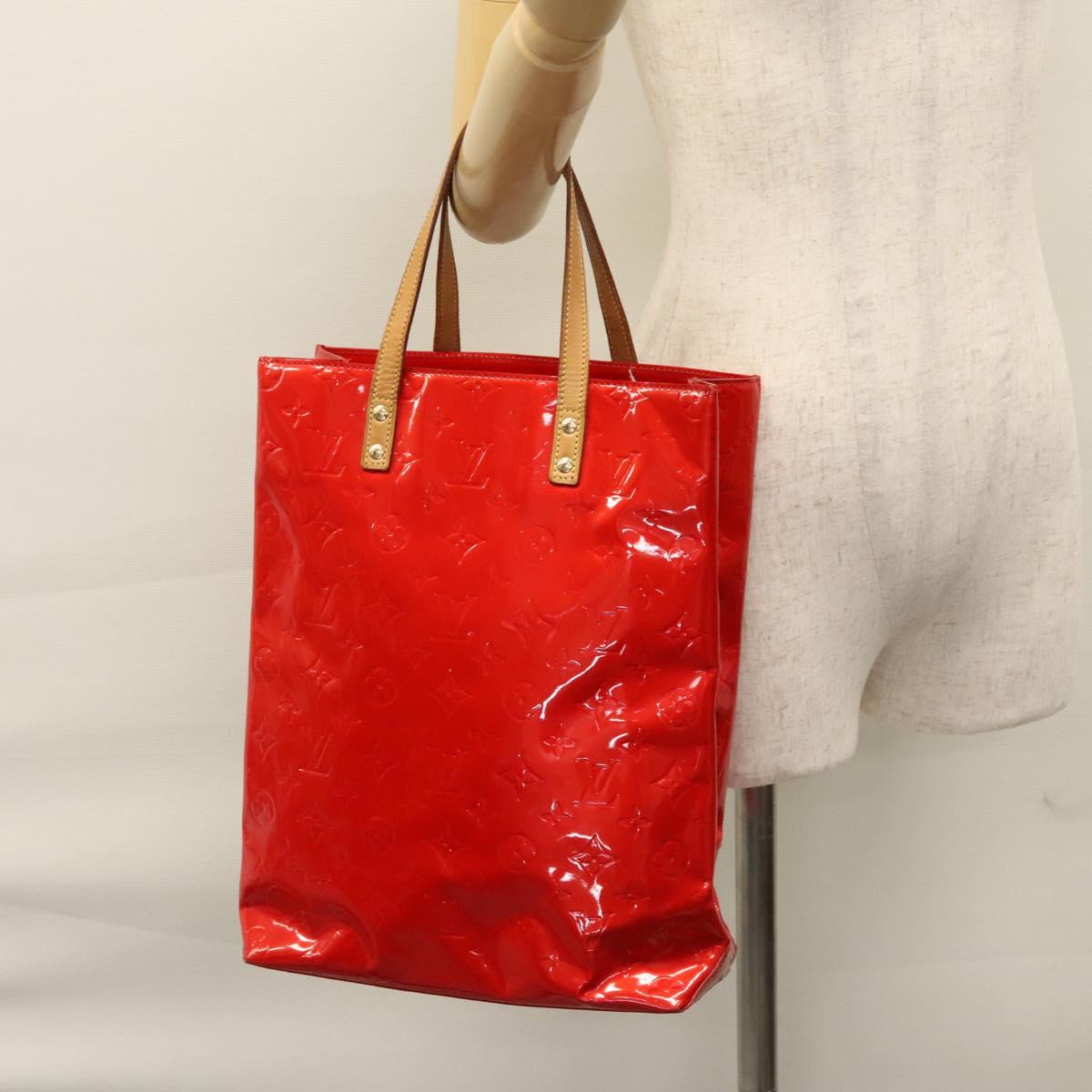 LOUIS VUITTON Monogram Vernis Reade MM Hand Bag Red Rouge M91086 LV Auth BD284