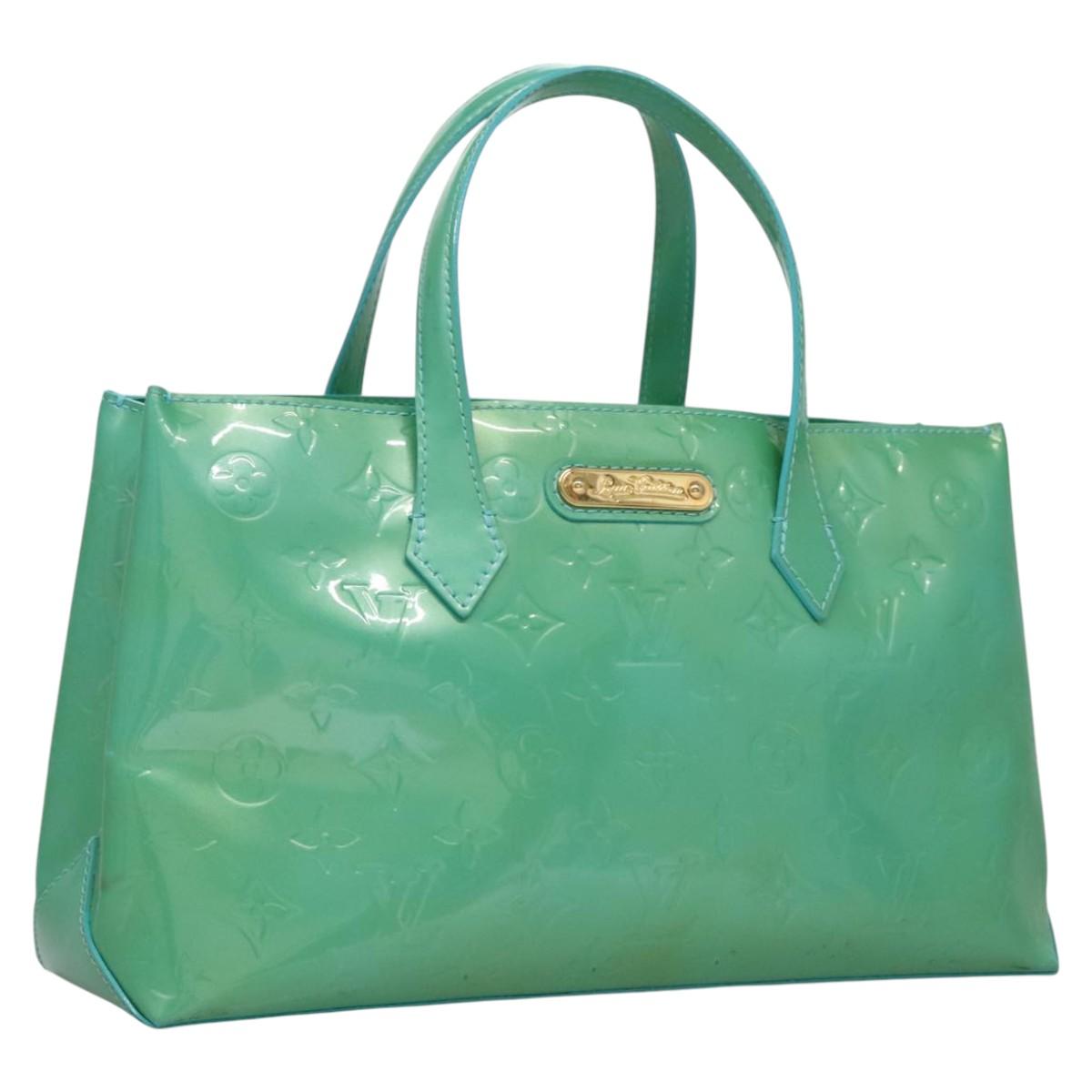 LOUIS VUITTON Monogram Vernis Wilshire PM Hand Bag Blue Lagon M91724 Auth 114561