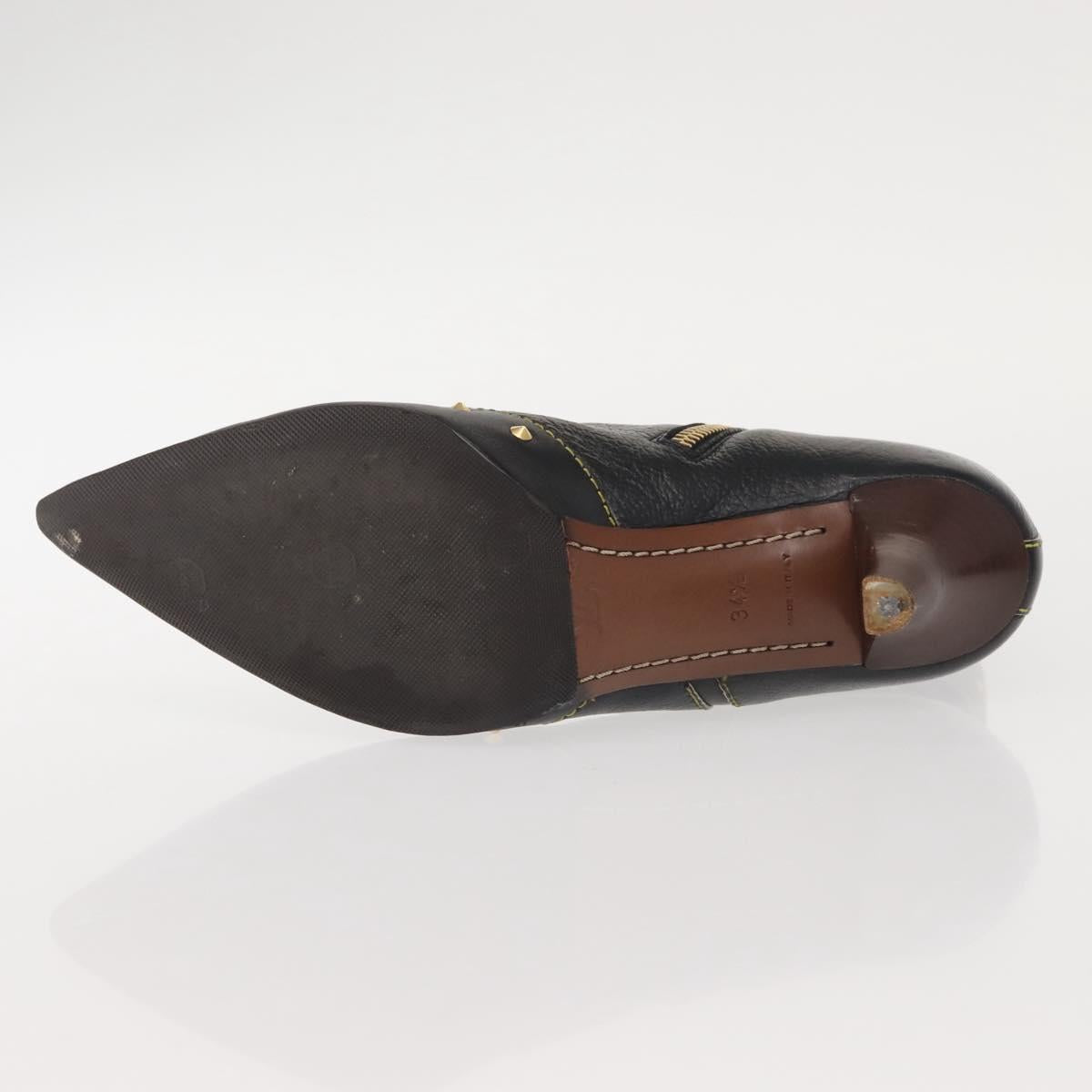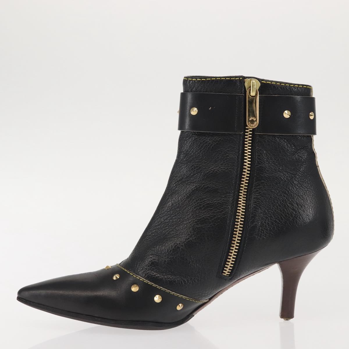 LOUIS VUITTON Short Boots Suhari Leather 34 1/2 Black Gold LV Auth 143282