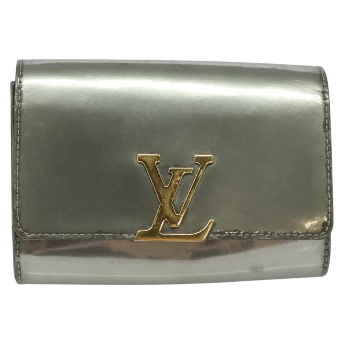 LOUIS VUITTON Vernis Pochette Louise PM Clutch Bag Silver LV Auth BD1178