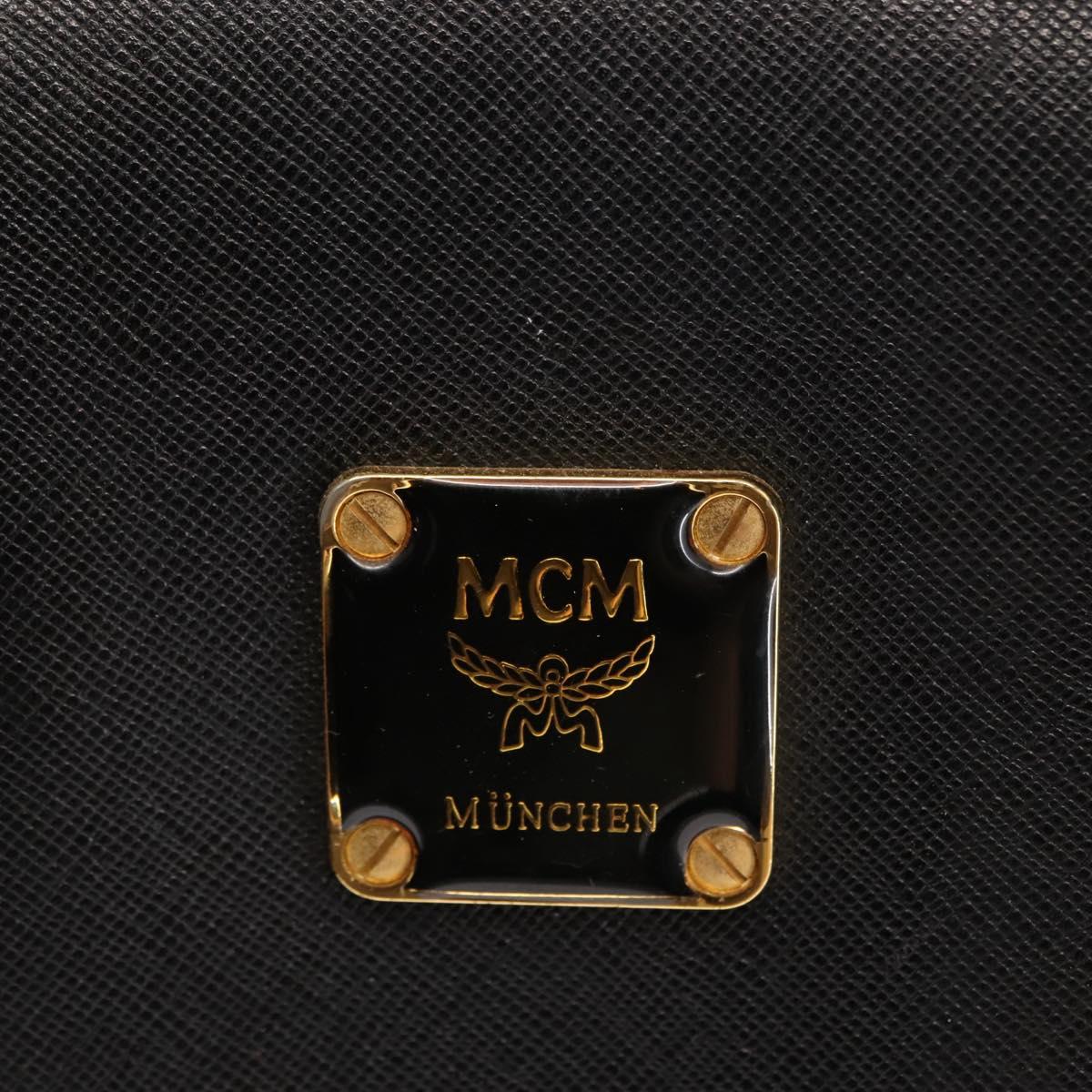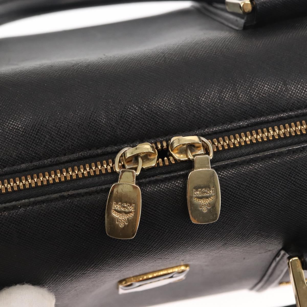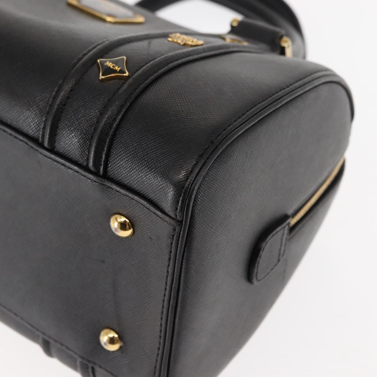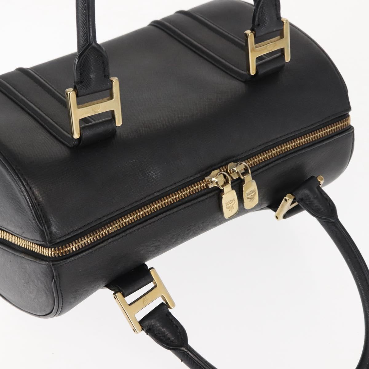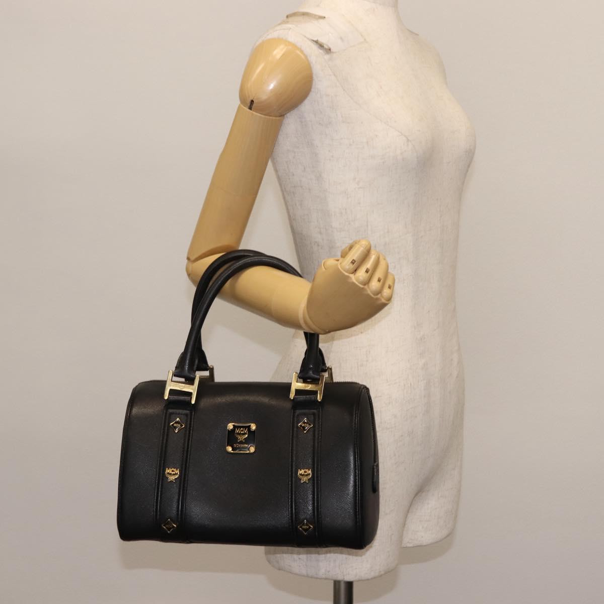 MCM Hand Bag Leather Black Gold Auth BA6732