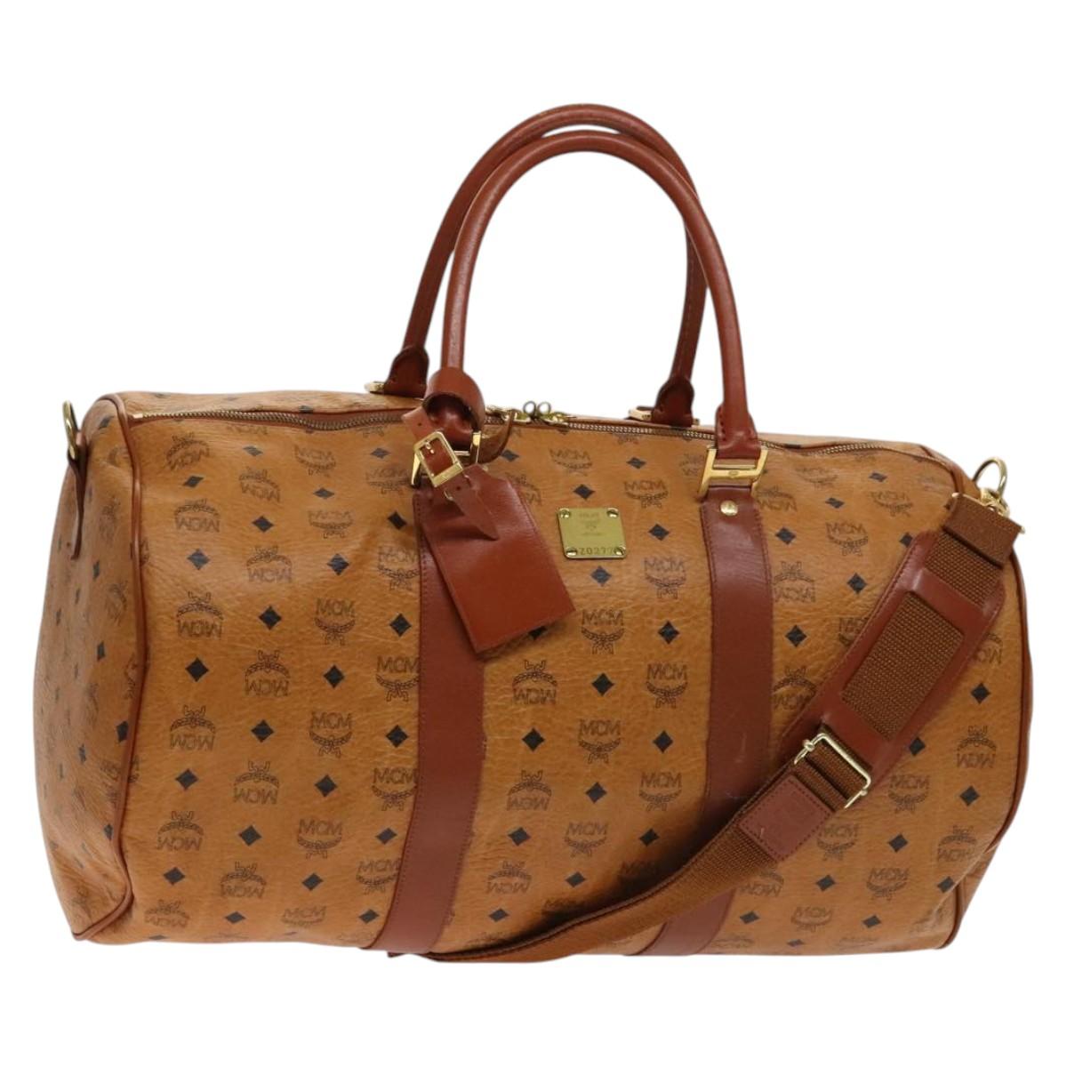 MCM Logogram Vicetos Boston Bag PVC Leather 2way Brown Gold Auth 137855