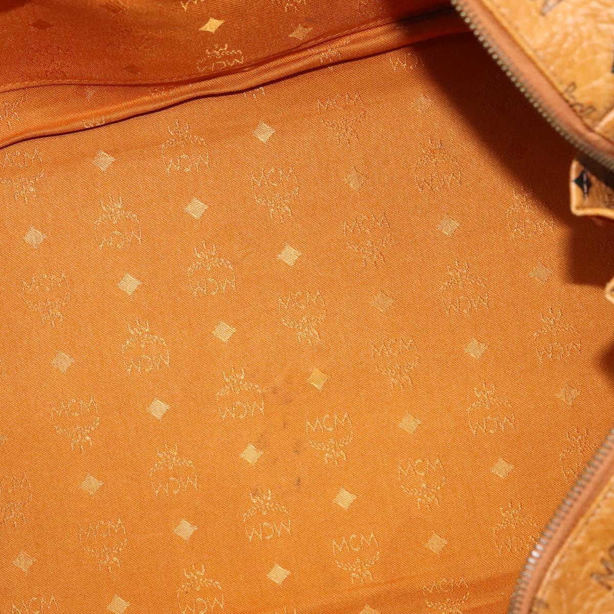 MCM Logogram Vicetos Boston Bag PVC Leather Brown Gold Auth 137869