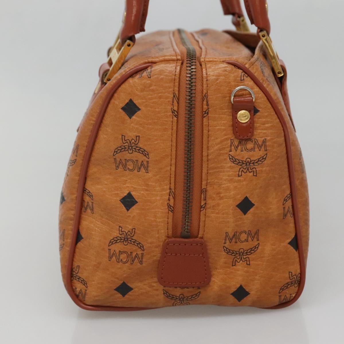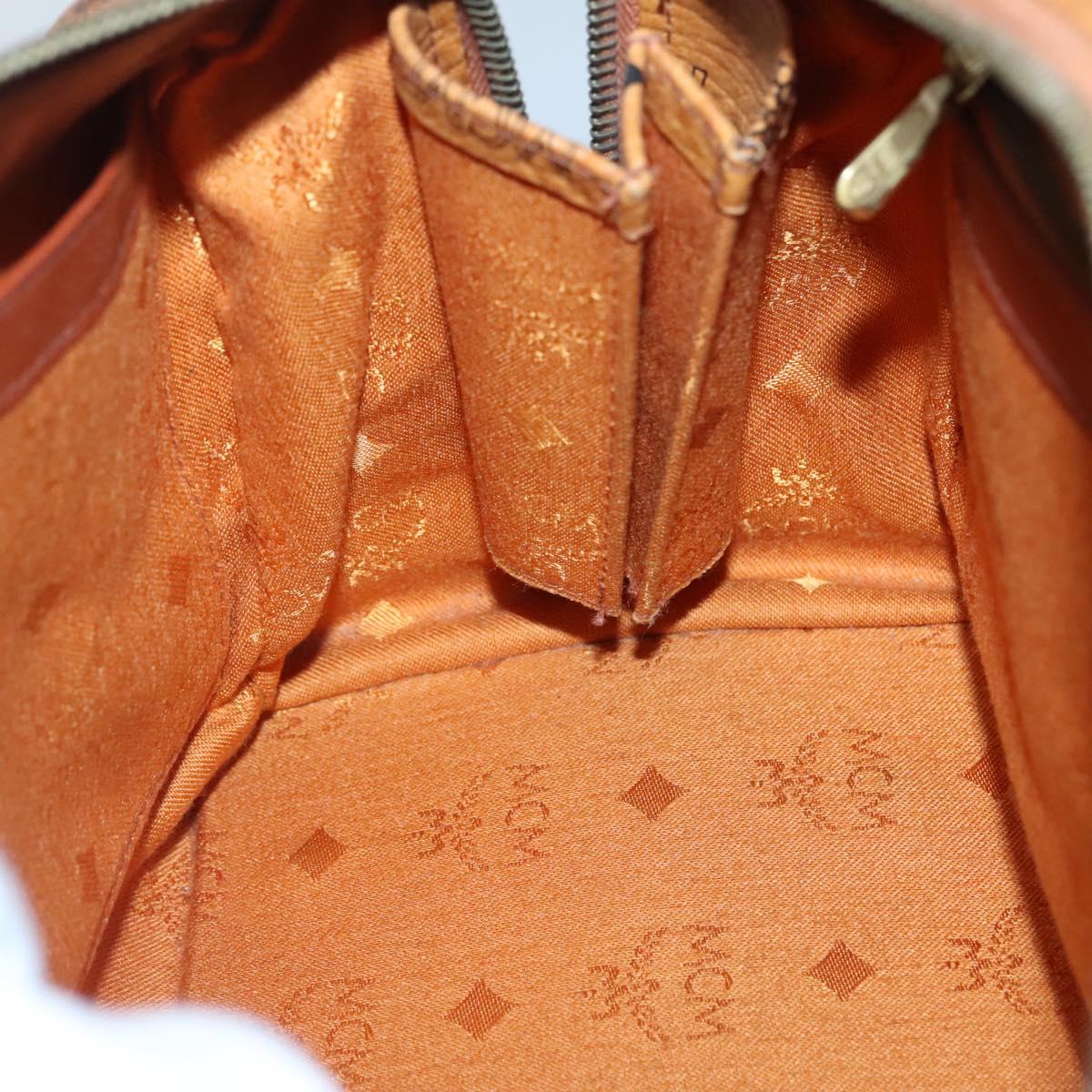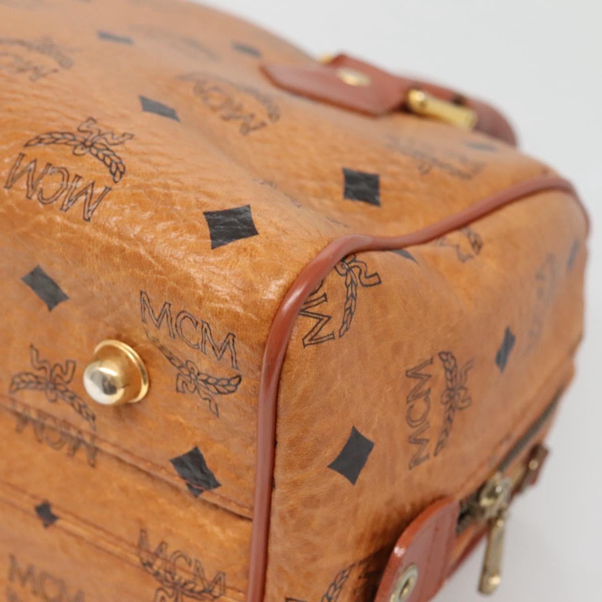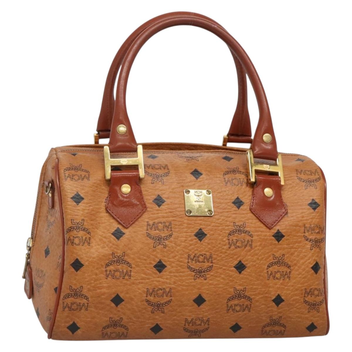 MCM Logogram Vicetos Boston Bag PVC Leather Brown Gold Auth BA4839