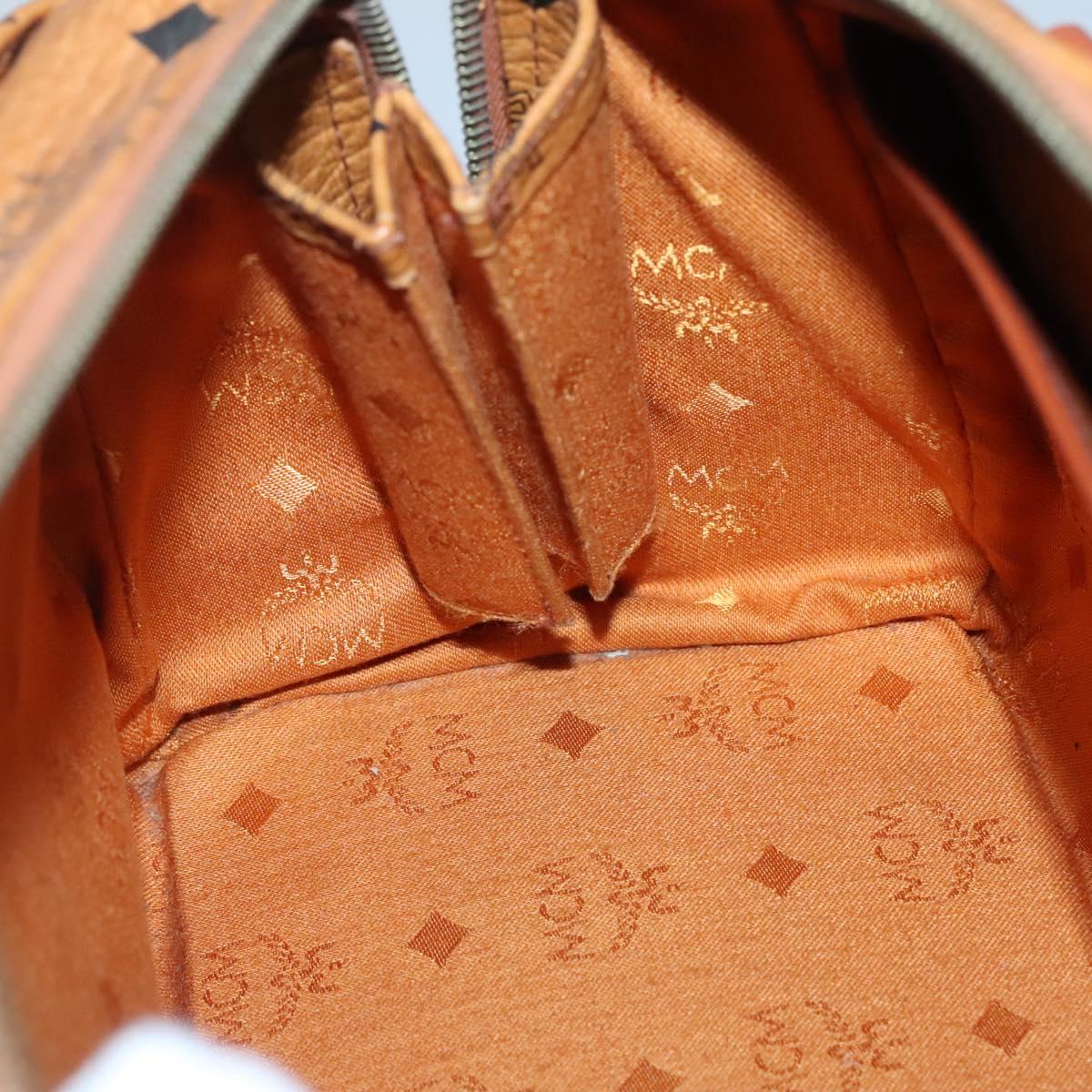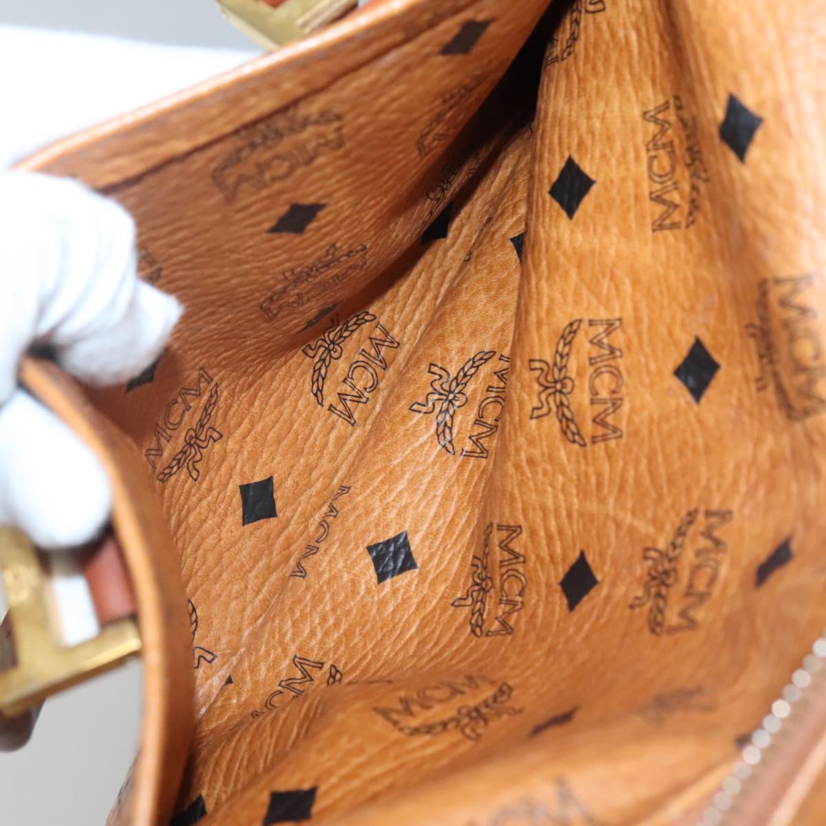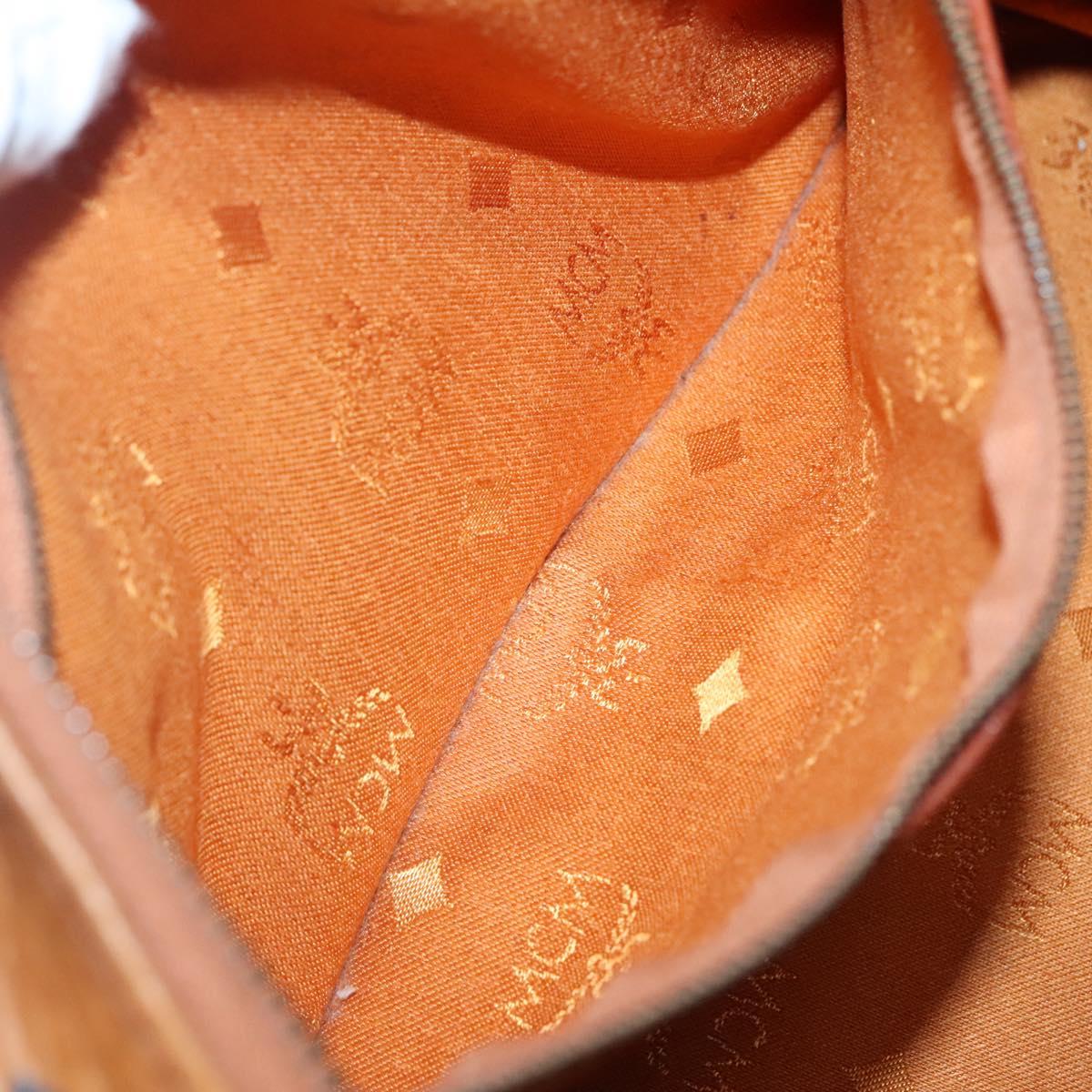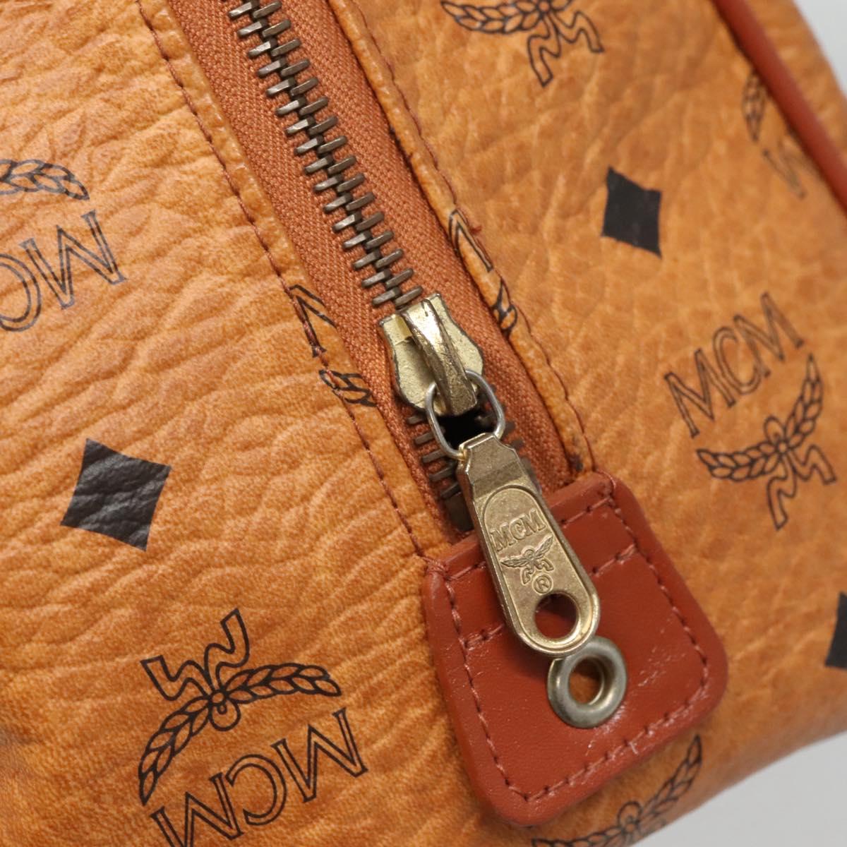 MCM Logogram Vicetos Boston Bag PVC Leather Brown Gold Auth BA4839