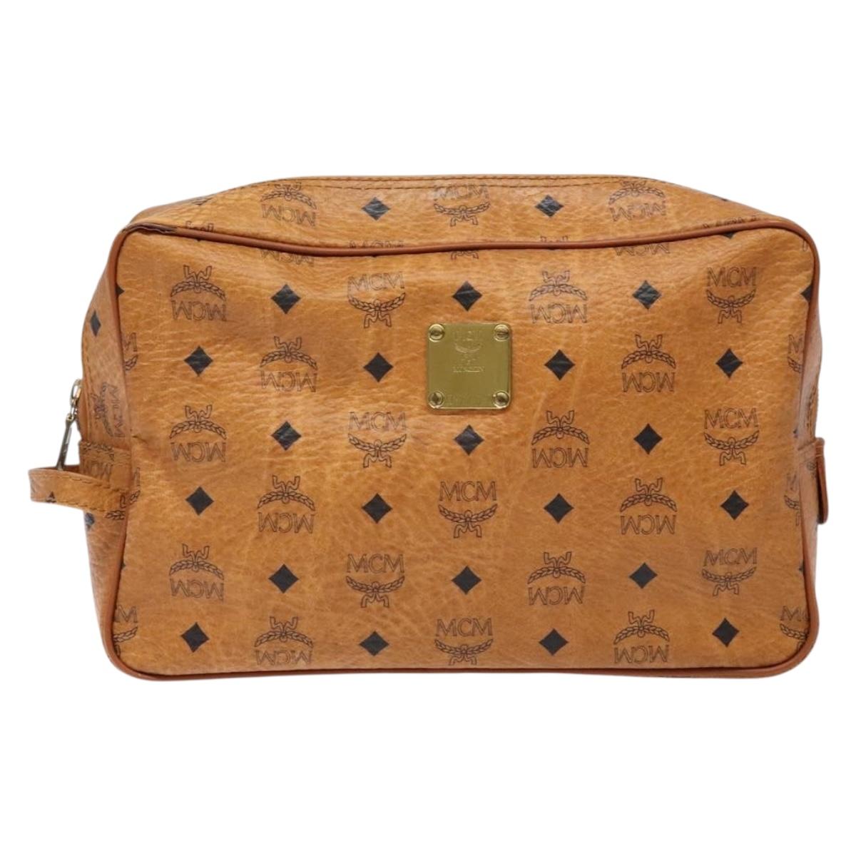 MCM Logogram Vicetos Clutch Bag PVC Leather Brown Gold Auth BA4837