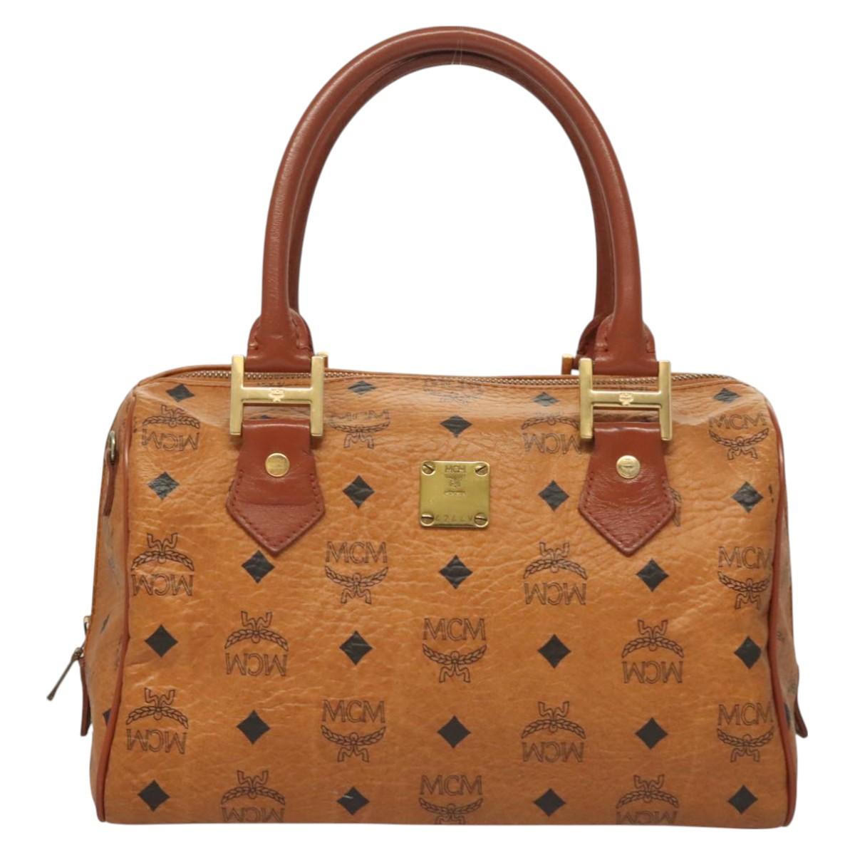 MCM Logogram Vicetos Hand Bag PVC Leather Brown Gold Auth 131058