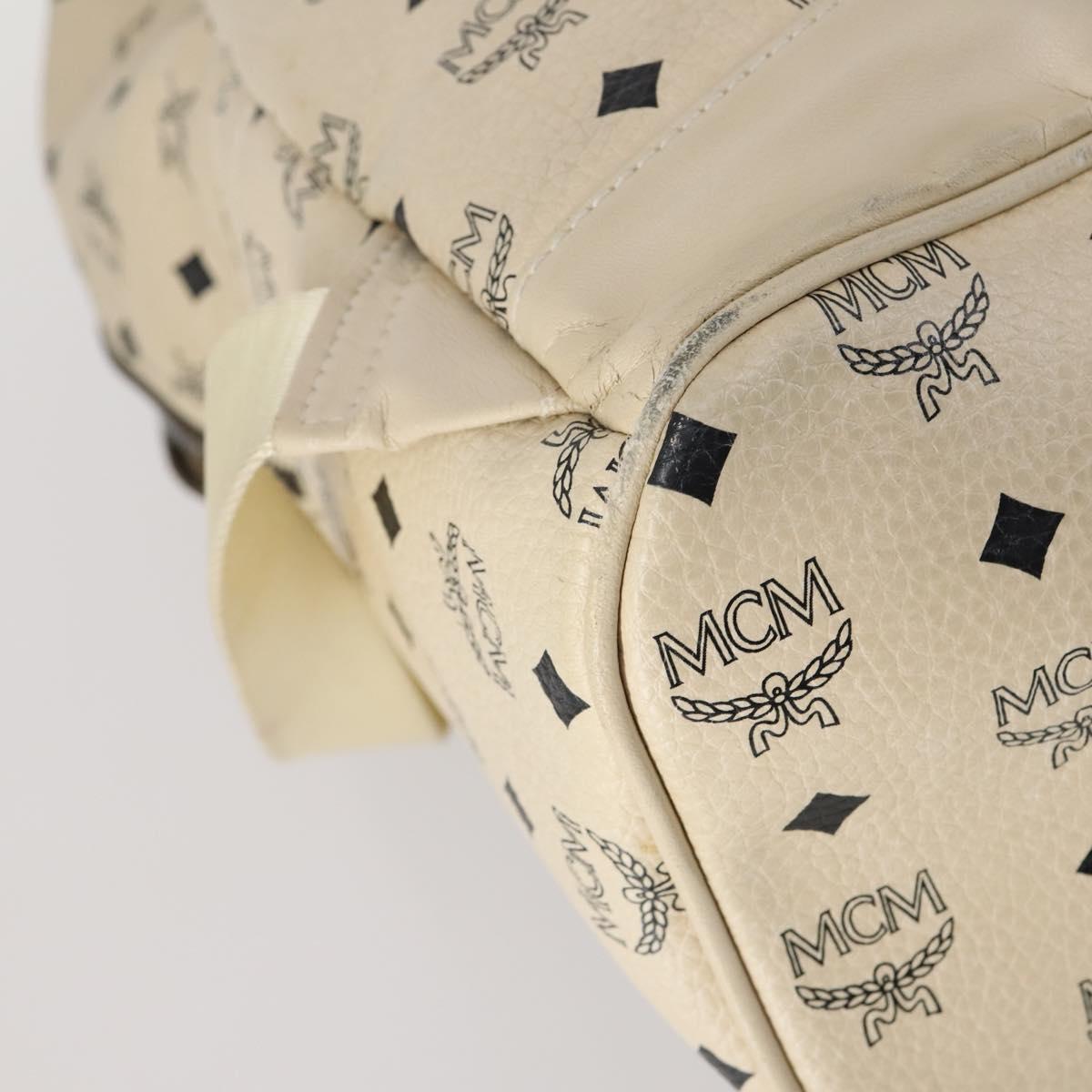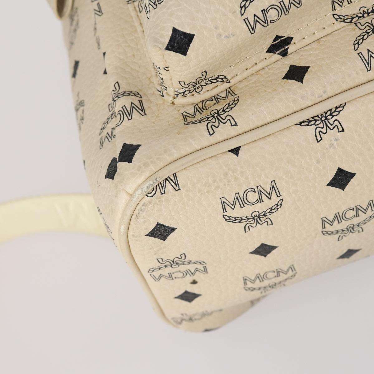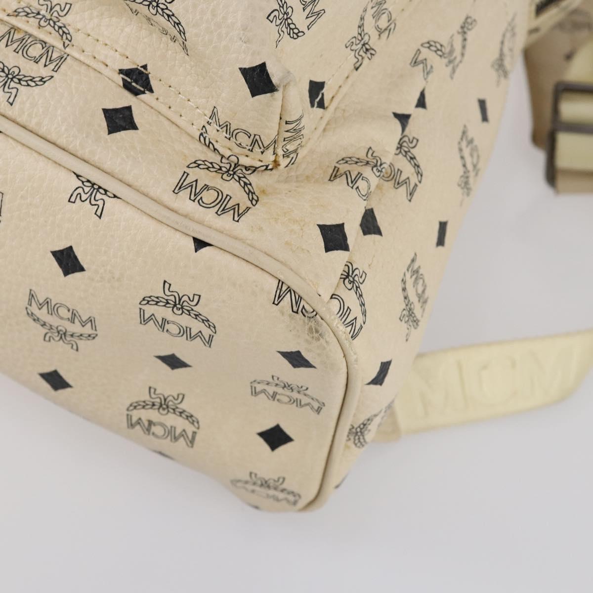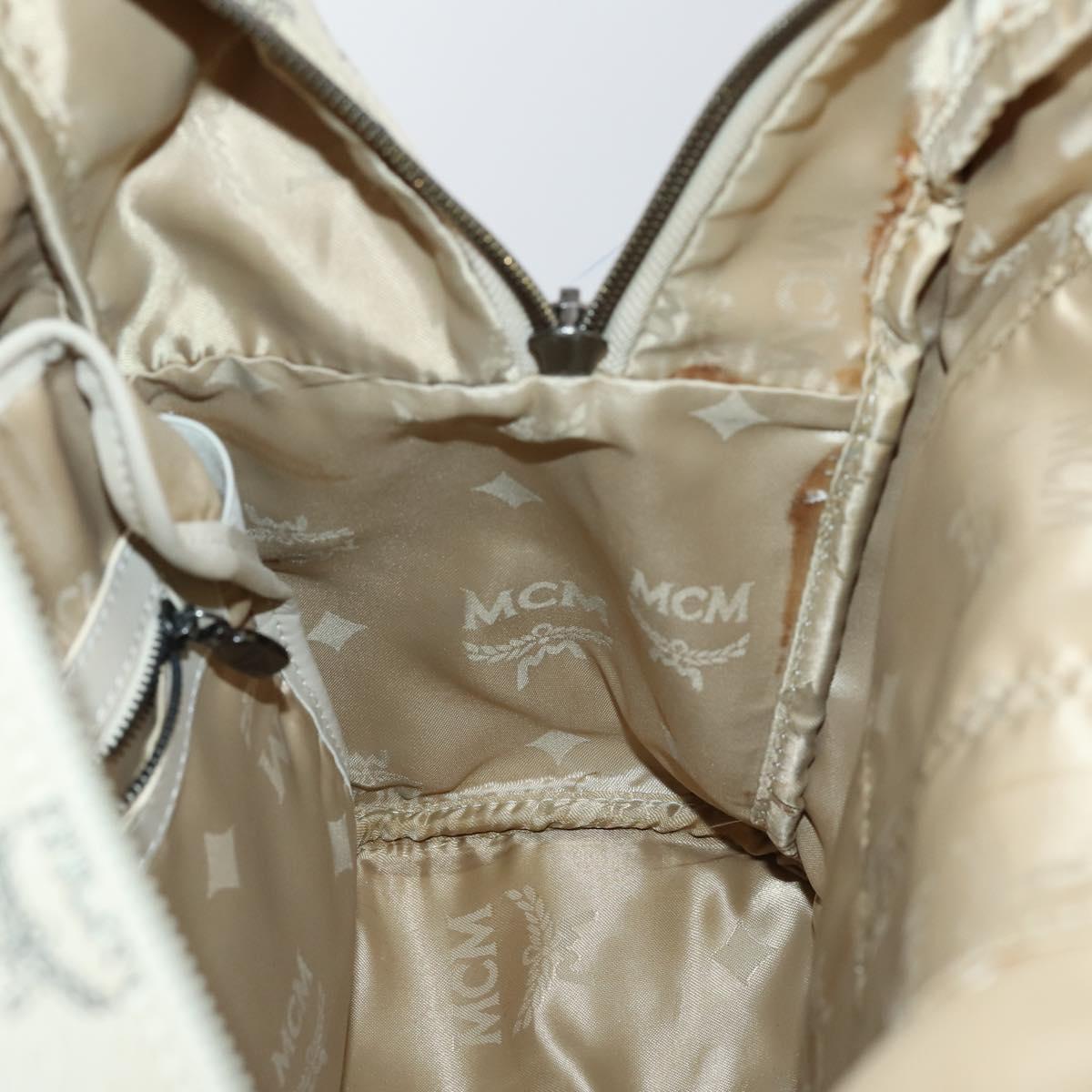 MCM Vicetos Logogram Backpack PVC Leather White Silver Auth gh883