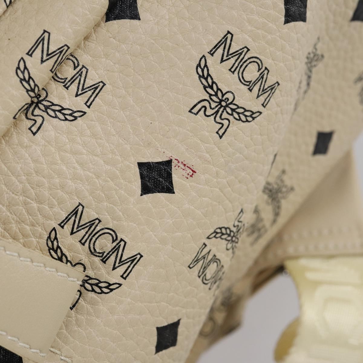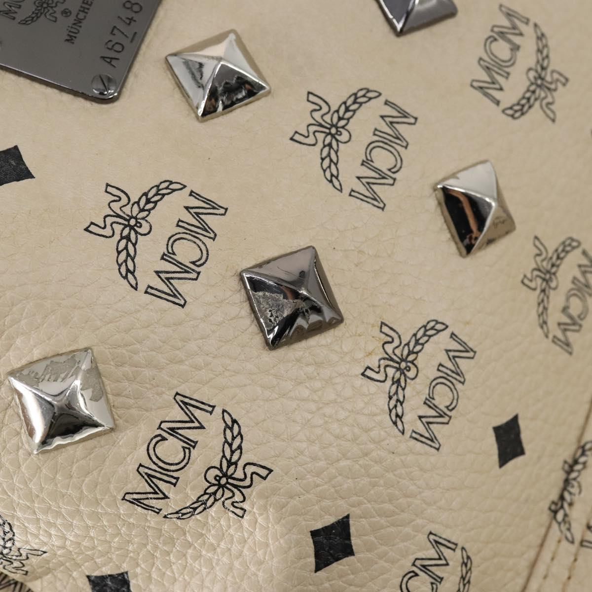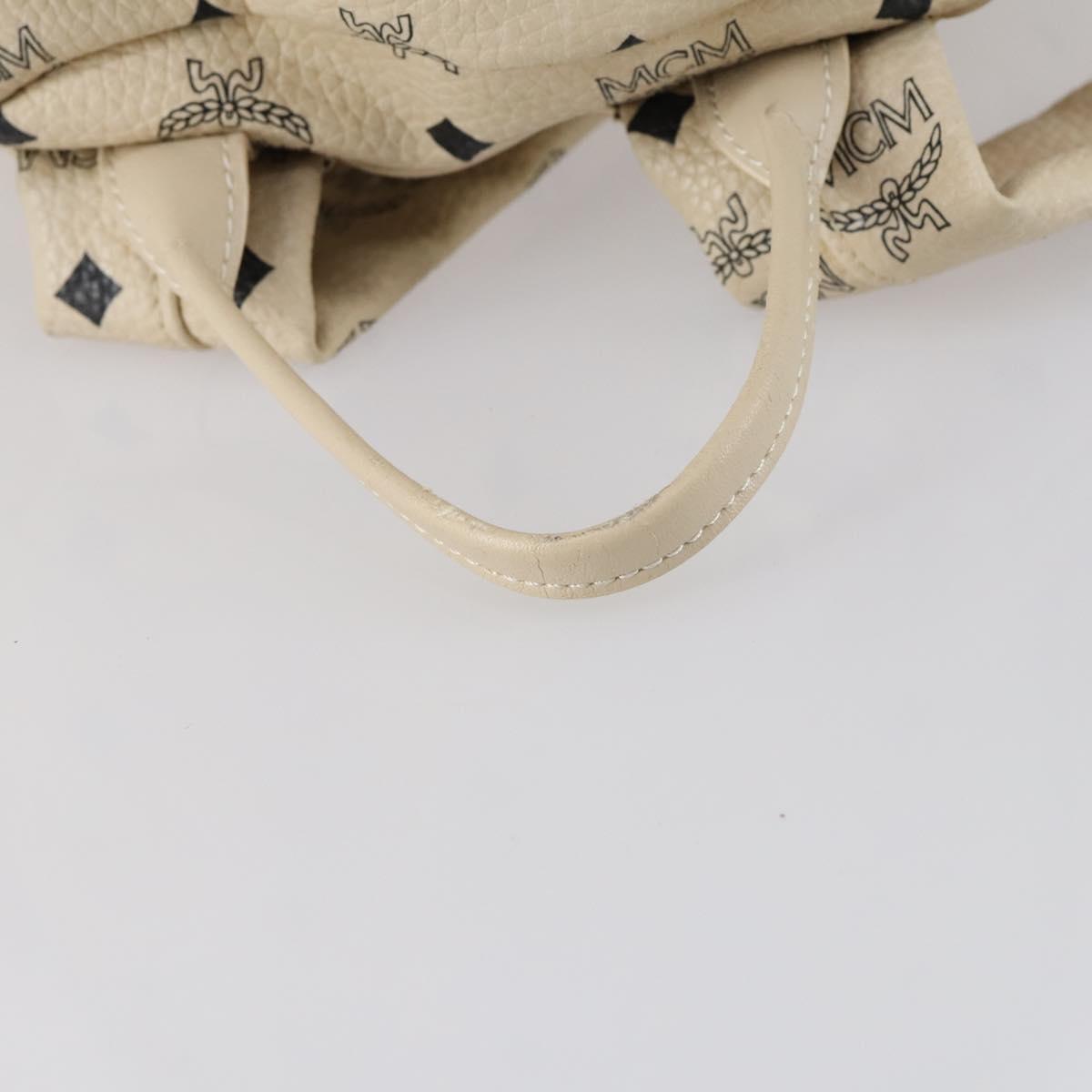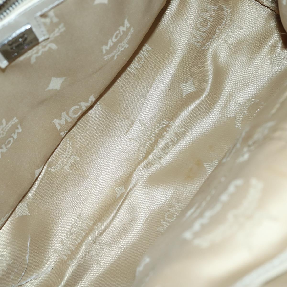 MCM Vicetos Logogram Backpack PVC Leather White Silver Auth gh883