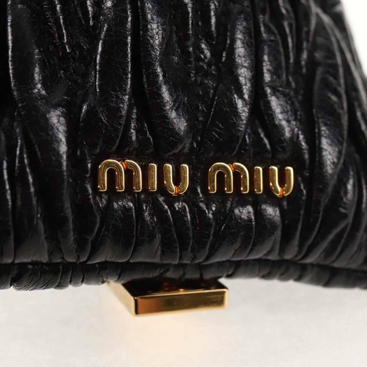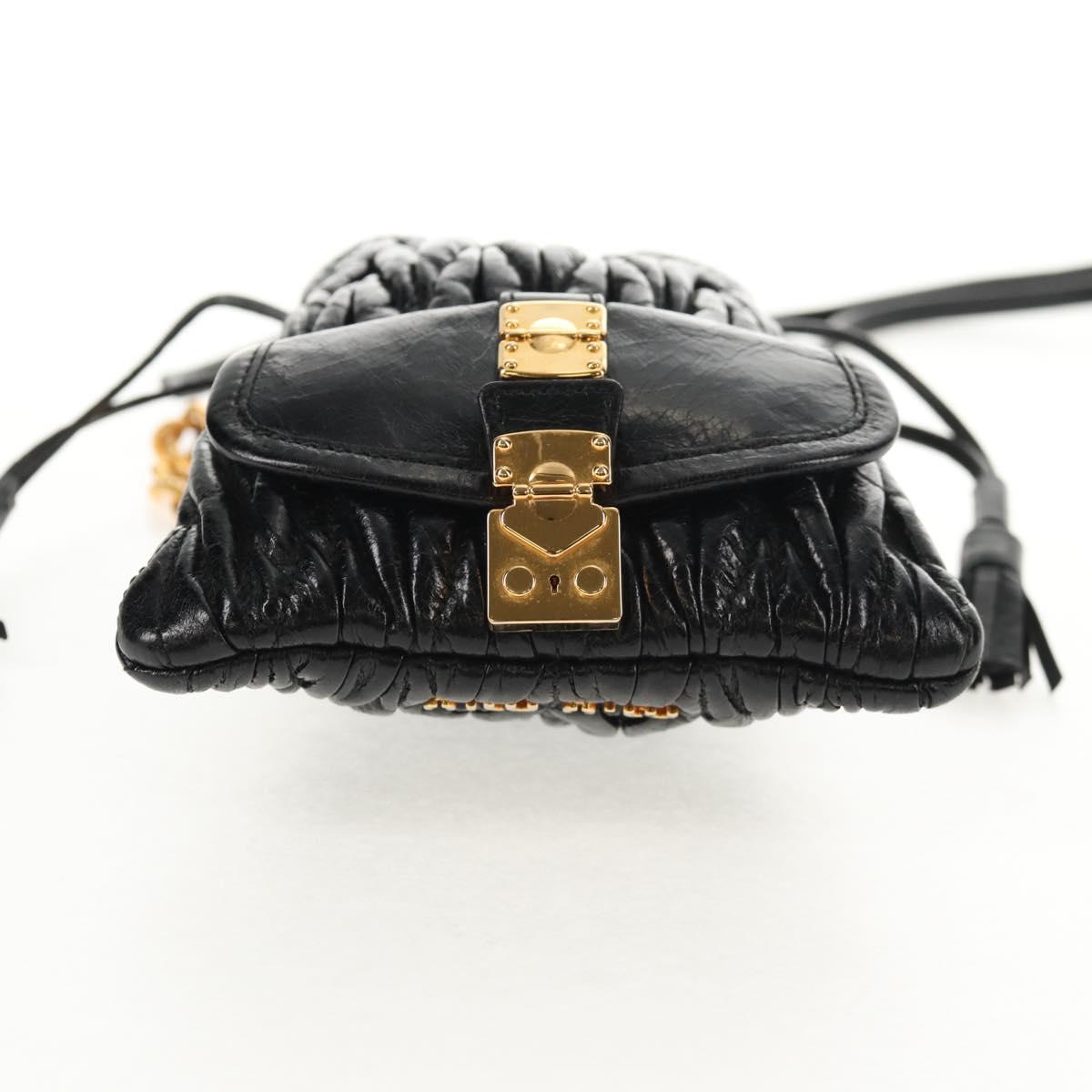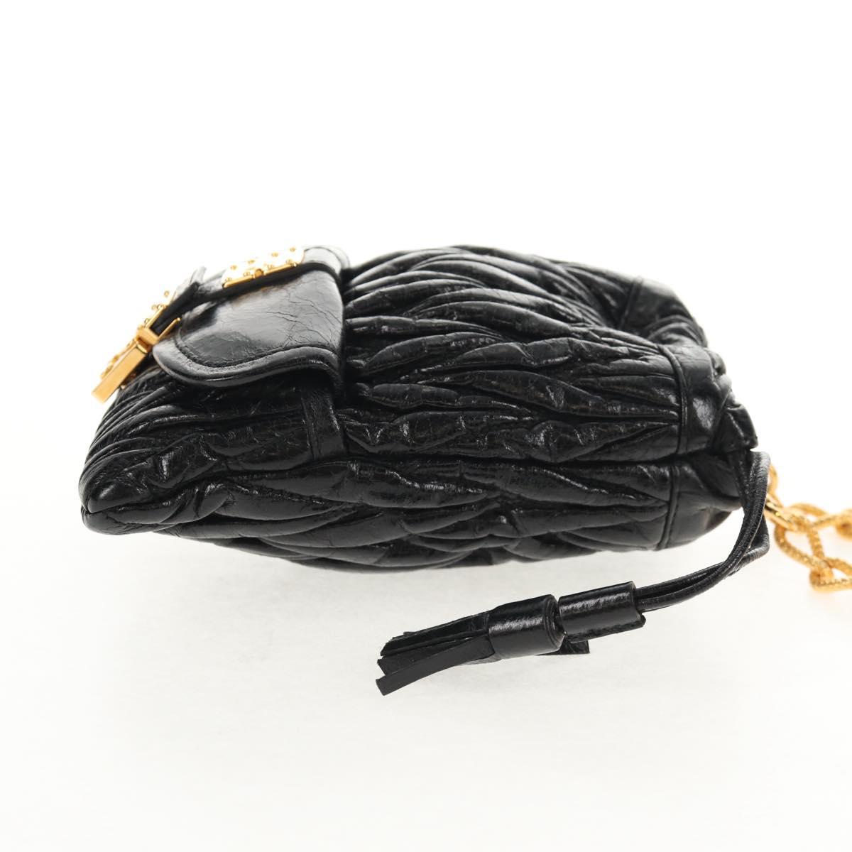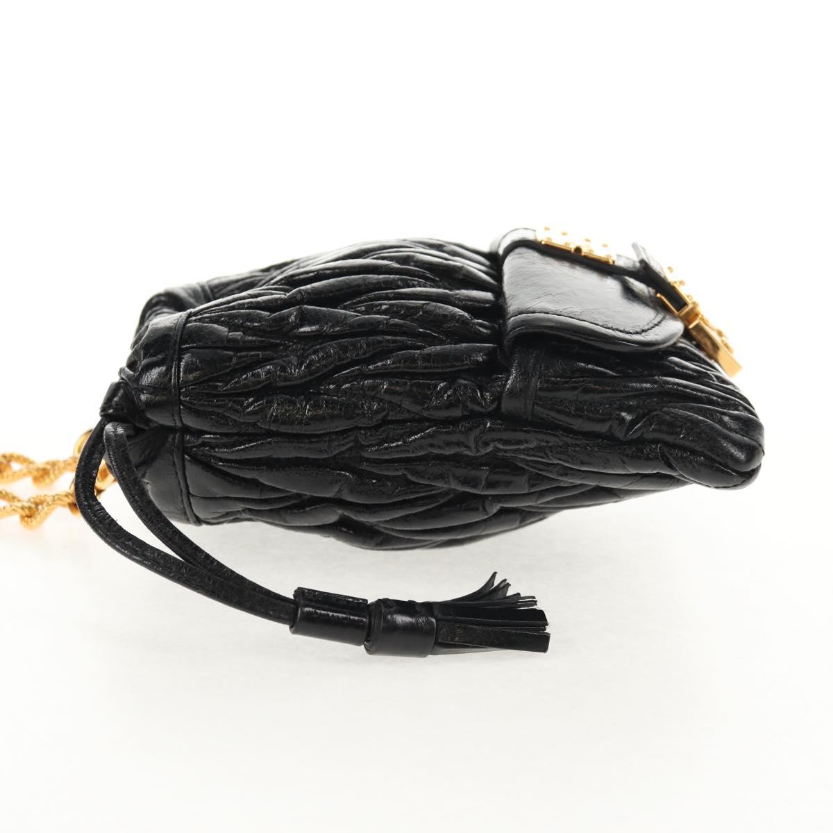 Miu Miu Matelasse Chain Shoulder Pouch Bag Leather Black Gold Auth 145557V
