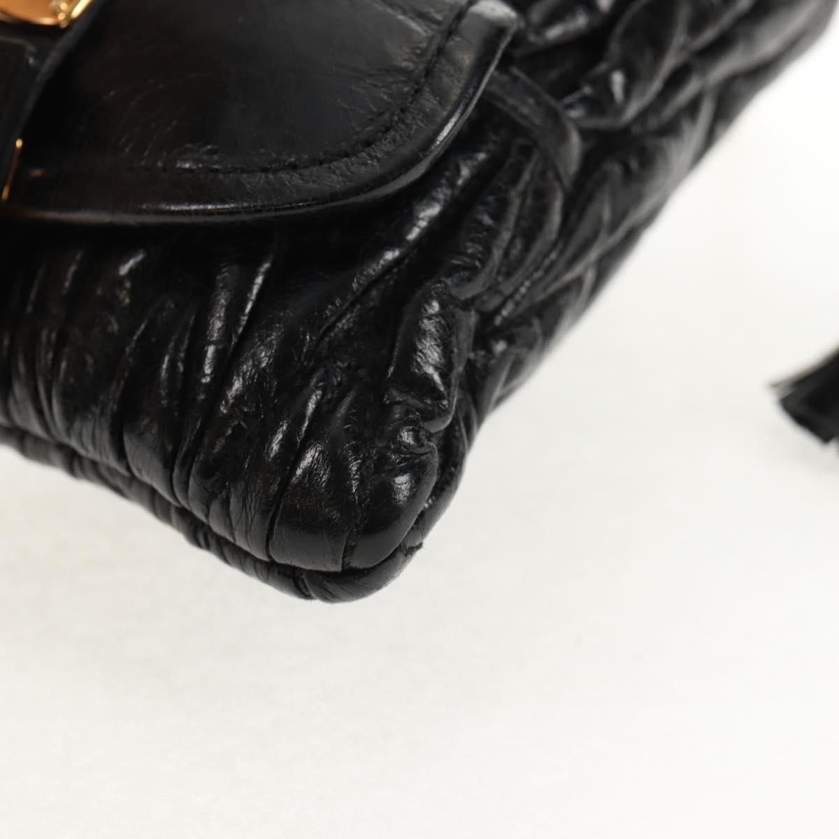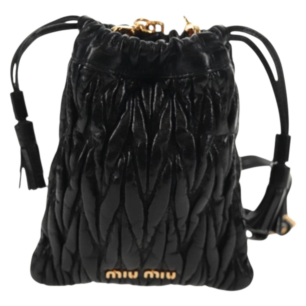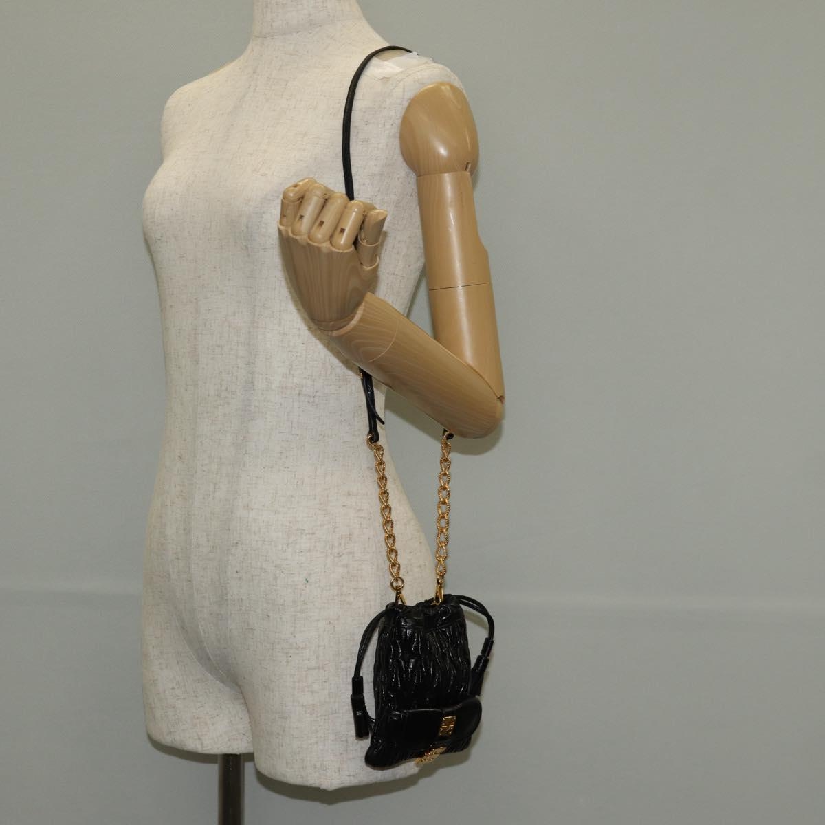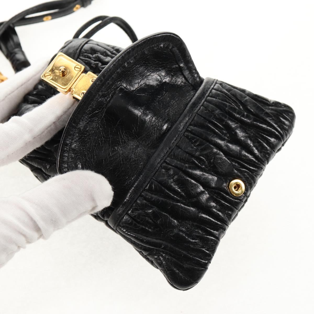 Miu Miu Matelasse Chain Shoulder Pouch Bag Leather Black Gold Auth 145557V