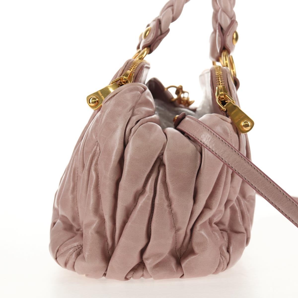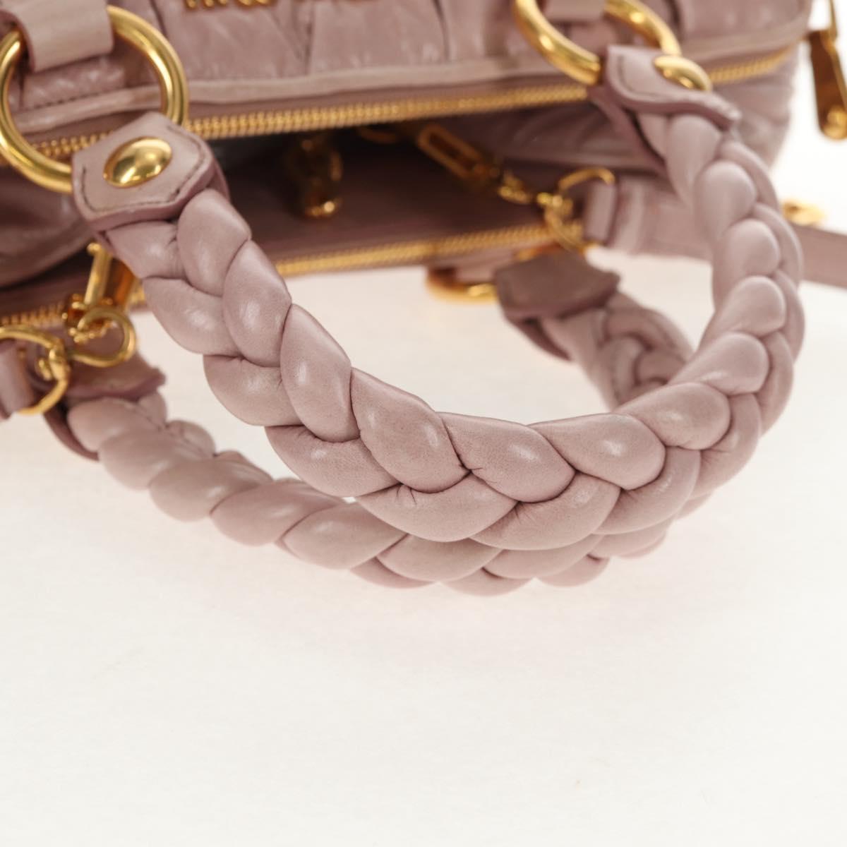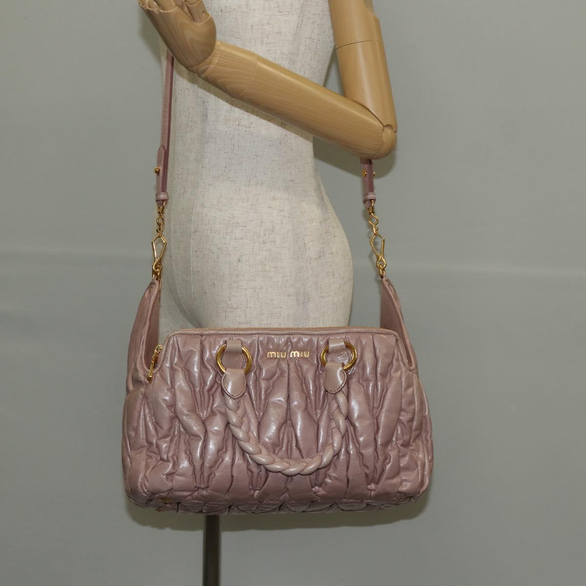 Miu Miu Matelasse Hand Bag Leather 2way Pink Gold Auth am9210V
