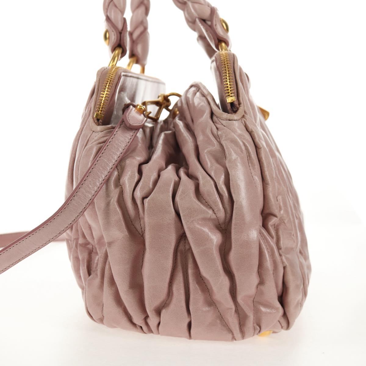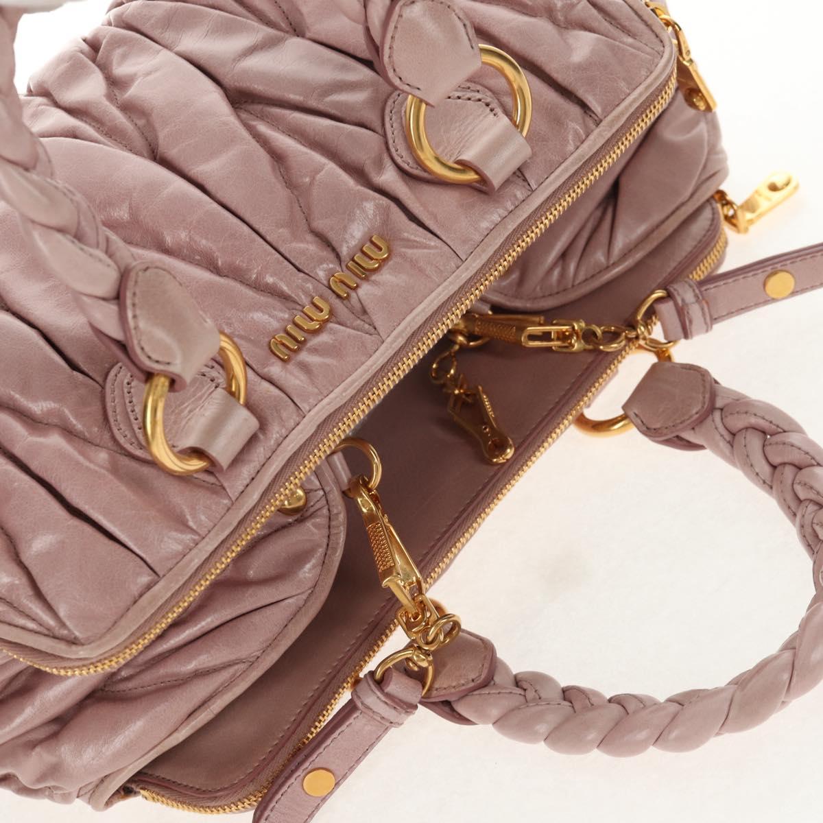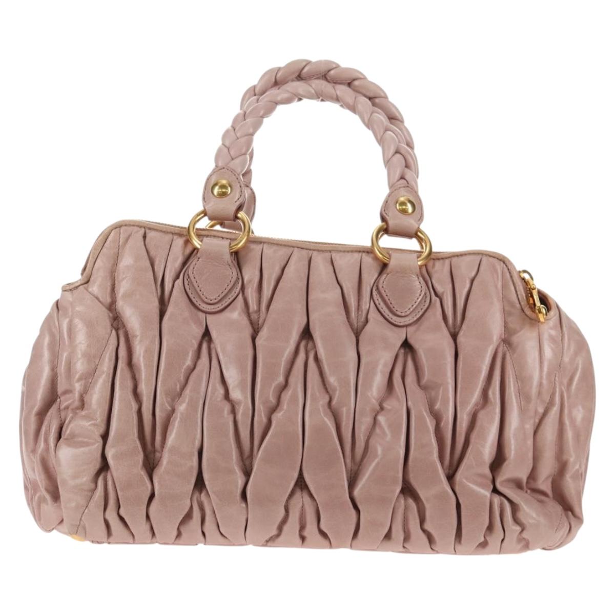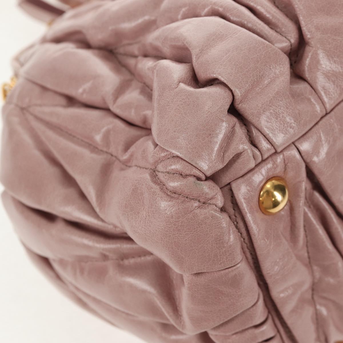 Miu Miu Matelasse Hand Bag Leather 2way Pink Gold Auth am9210V