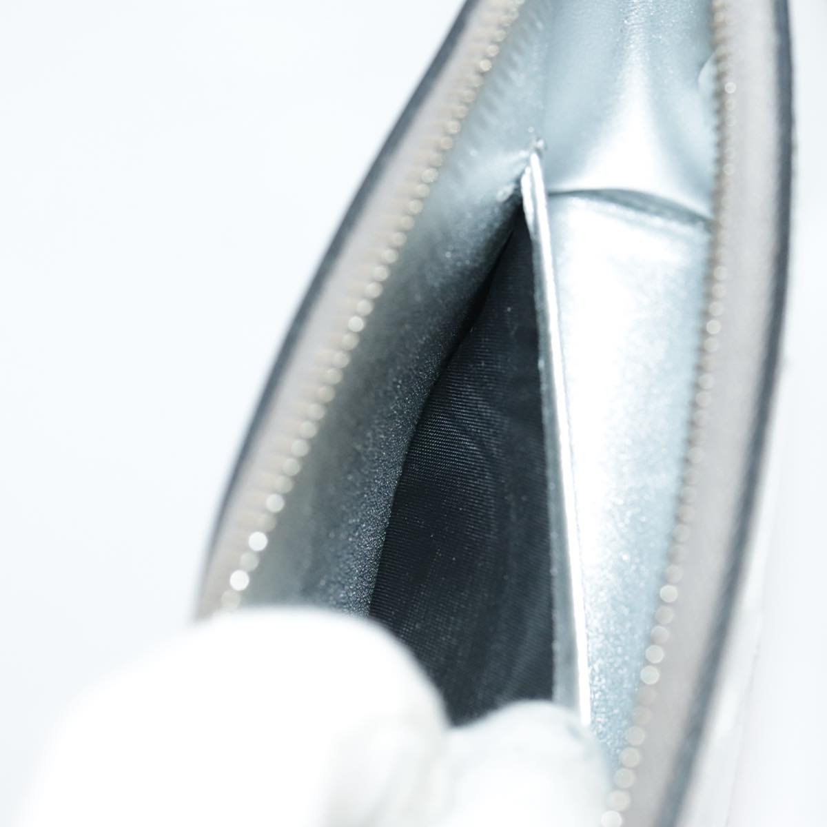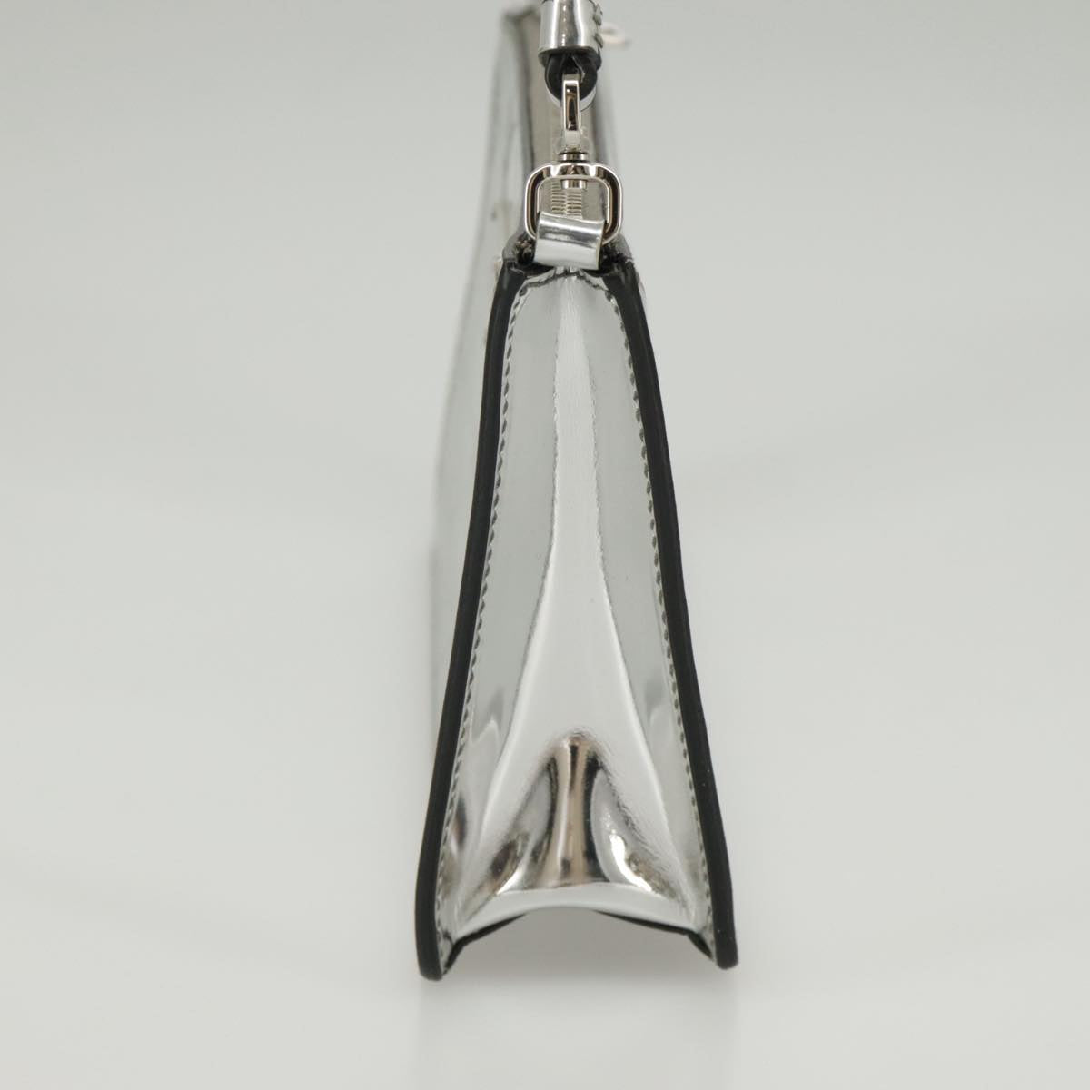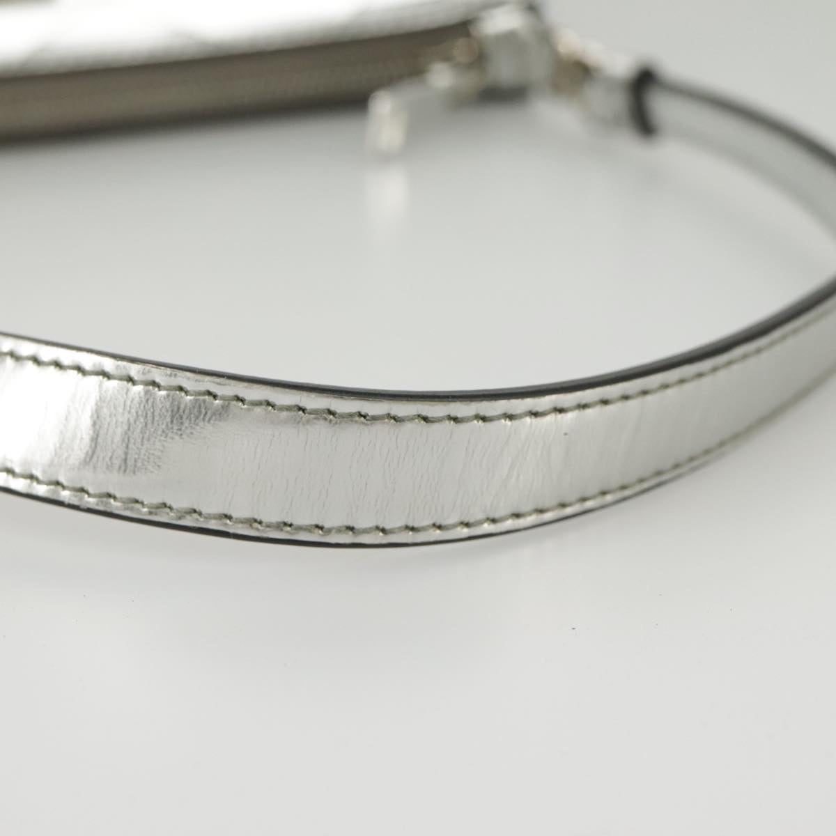 PRADA Accessory Pouch Metallic leather Silver Auth 101052AM