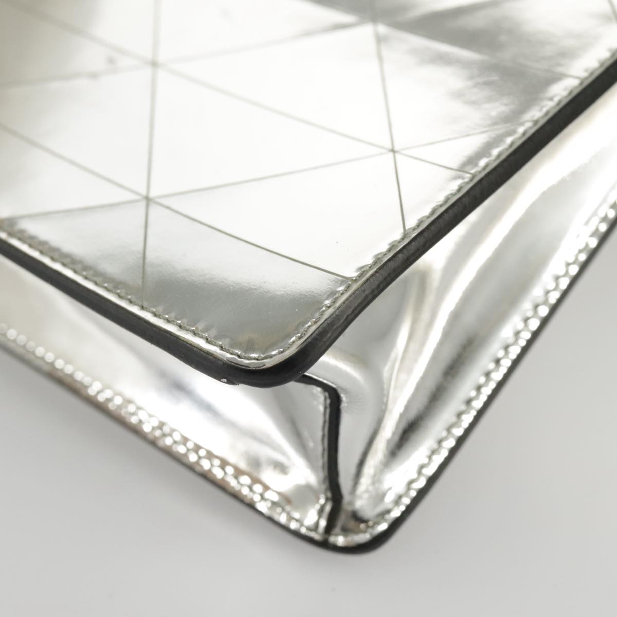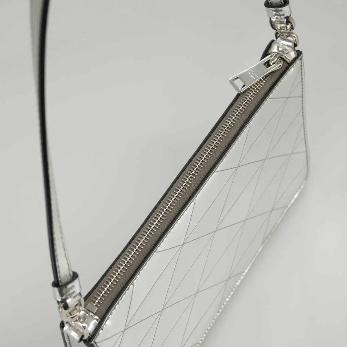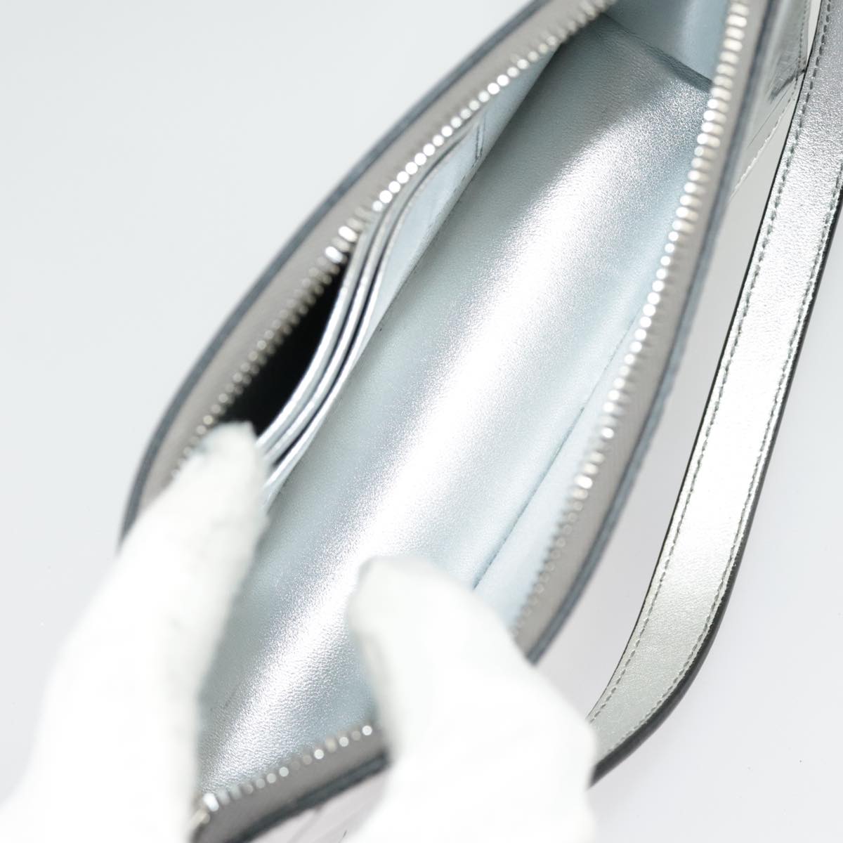 PRADA Accessory Pouch Metallic leather Silver Auth 101052AM