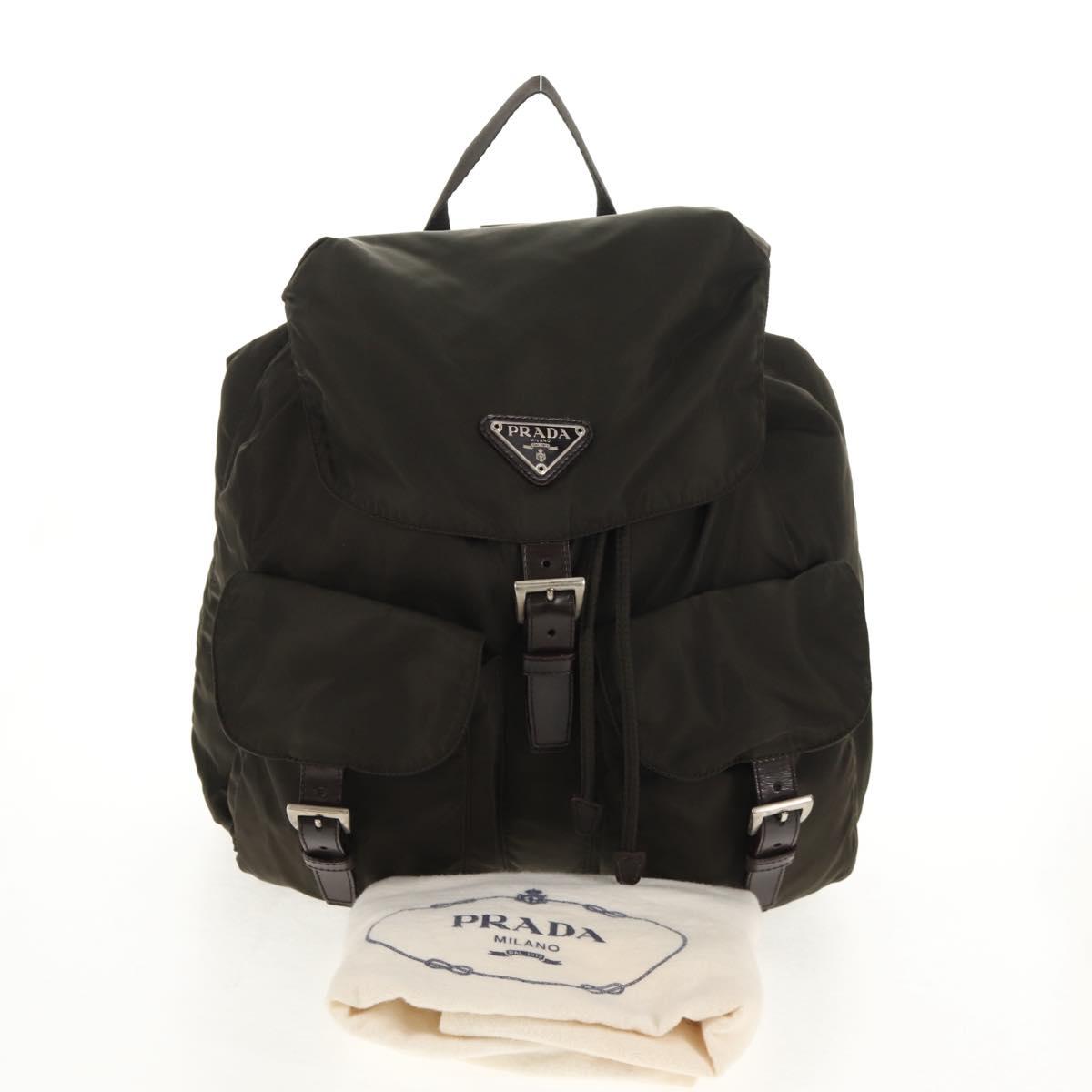 PRADA Backpack Nylon Khaki Silver Auth 145247V