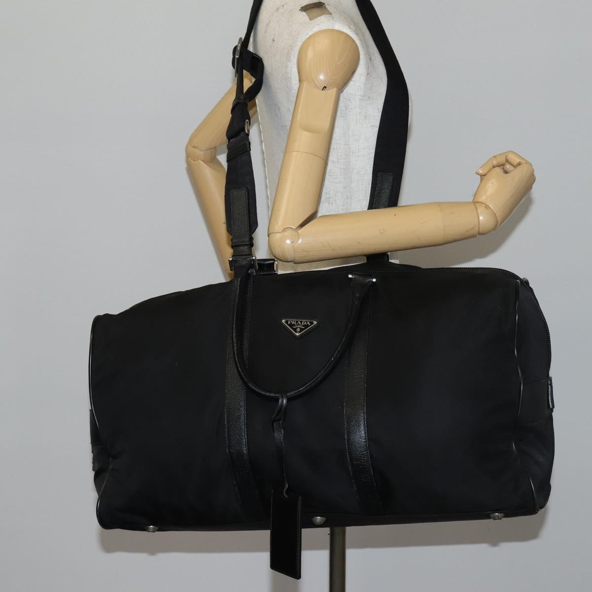 PRADA Boston Bag Nylon 2way Black Silver Auth BA6184