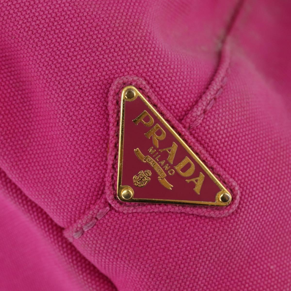 PRADA Canapa MM Hand Bag Canvas 2way Pink Gold Auth 143260