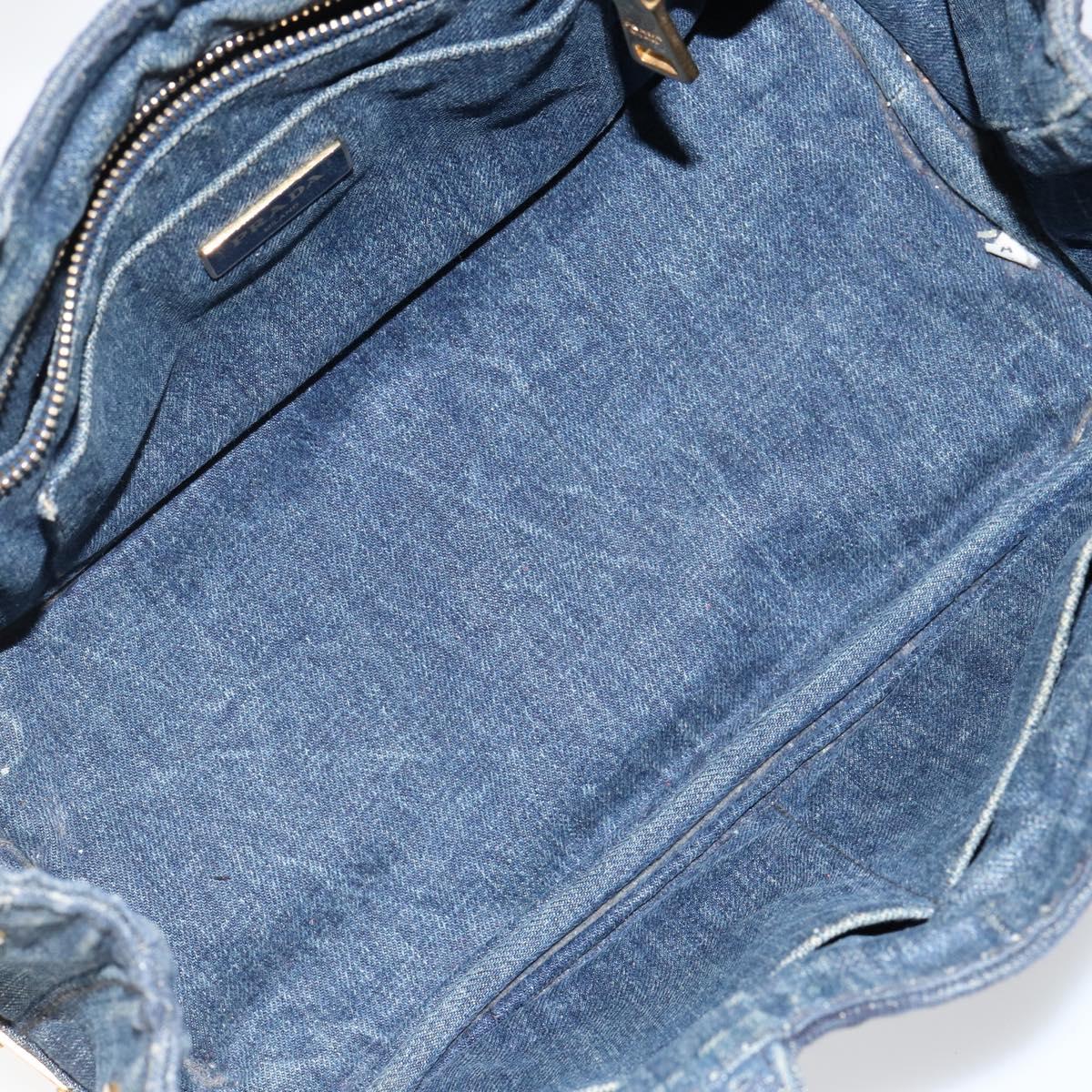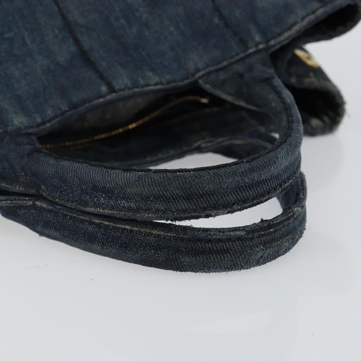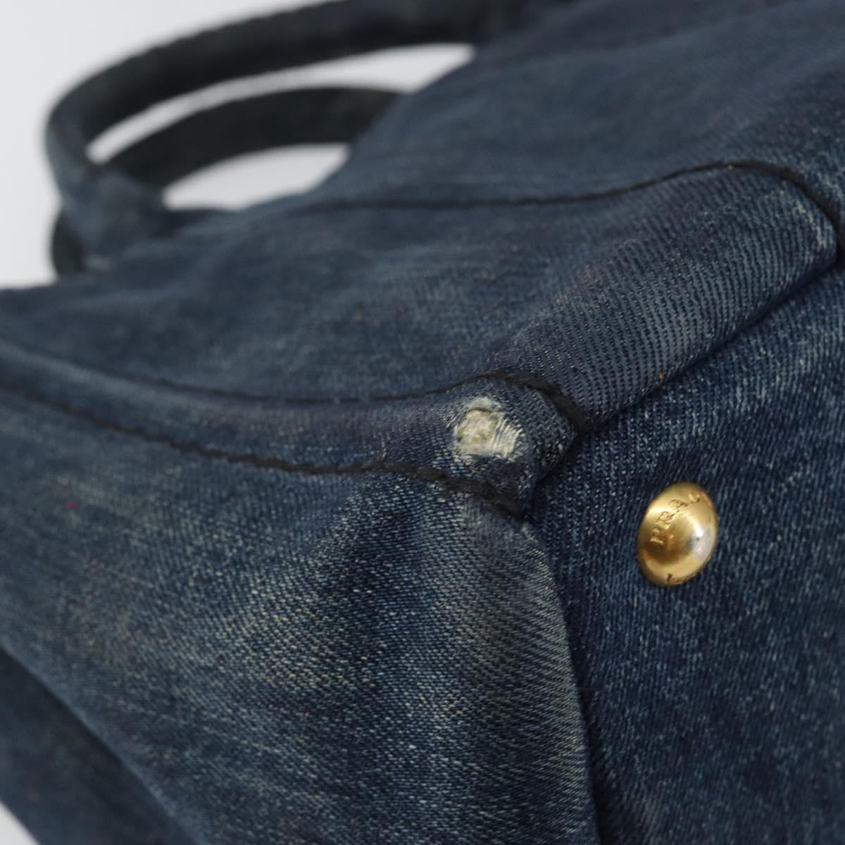 PRADA Canapa PM Hand Bag Denim Blue Gold Auth hk3051