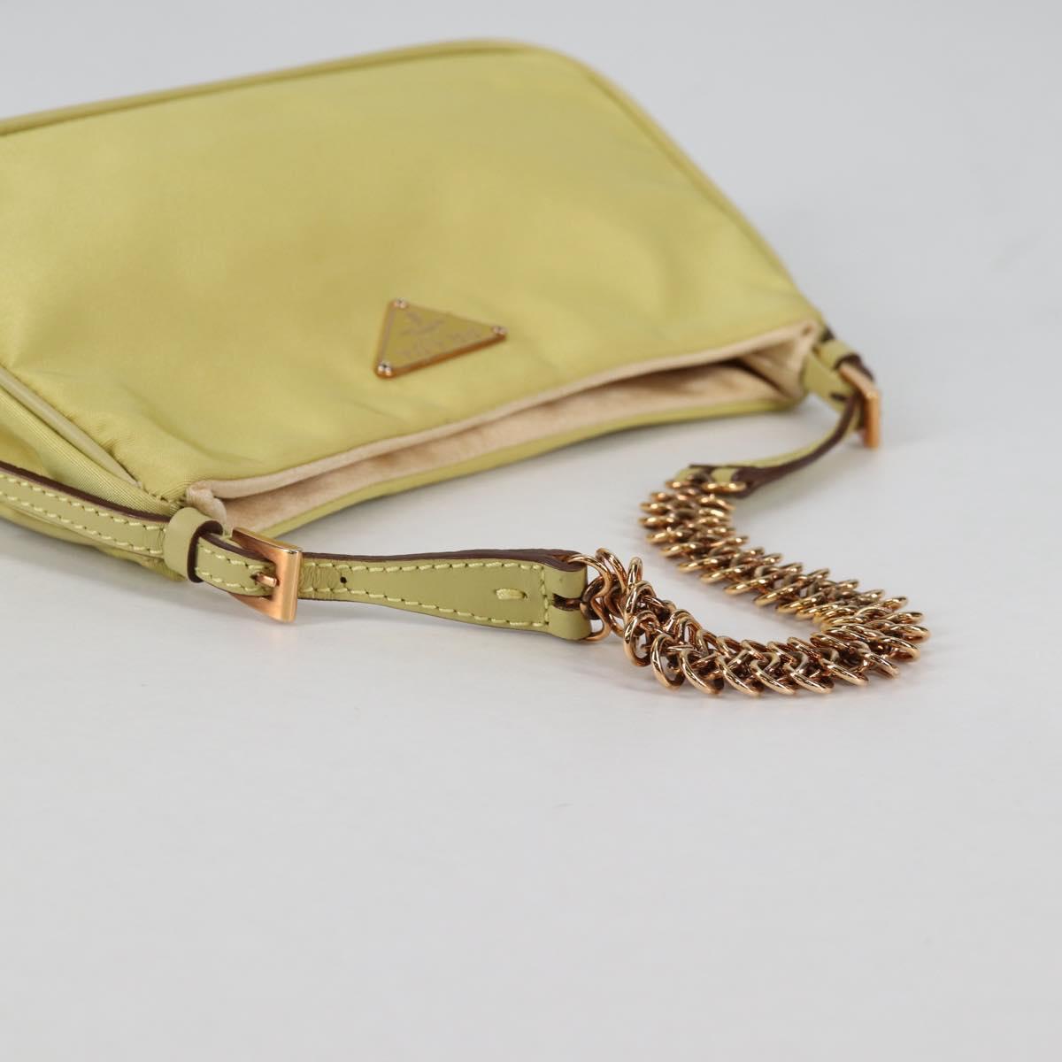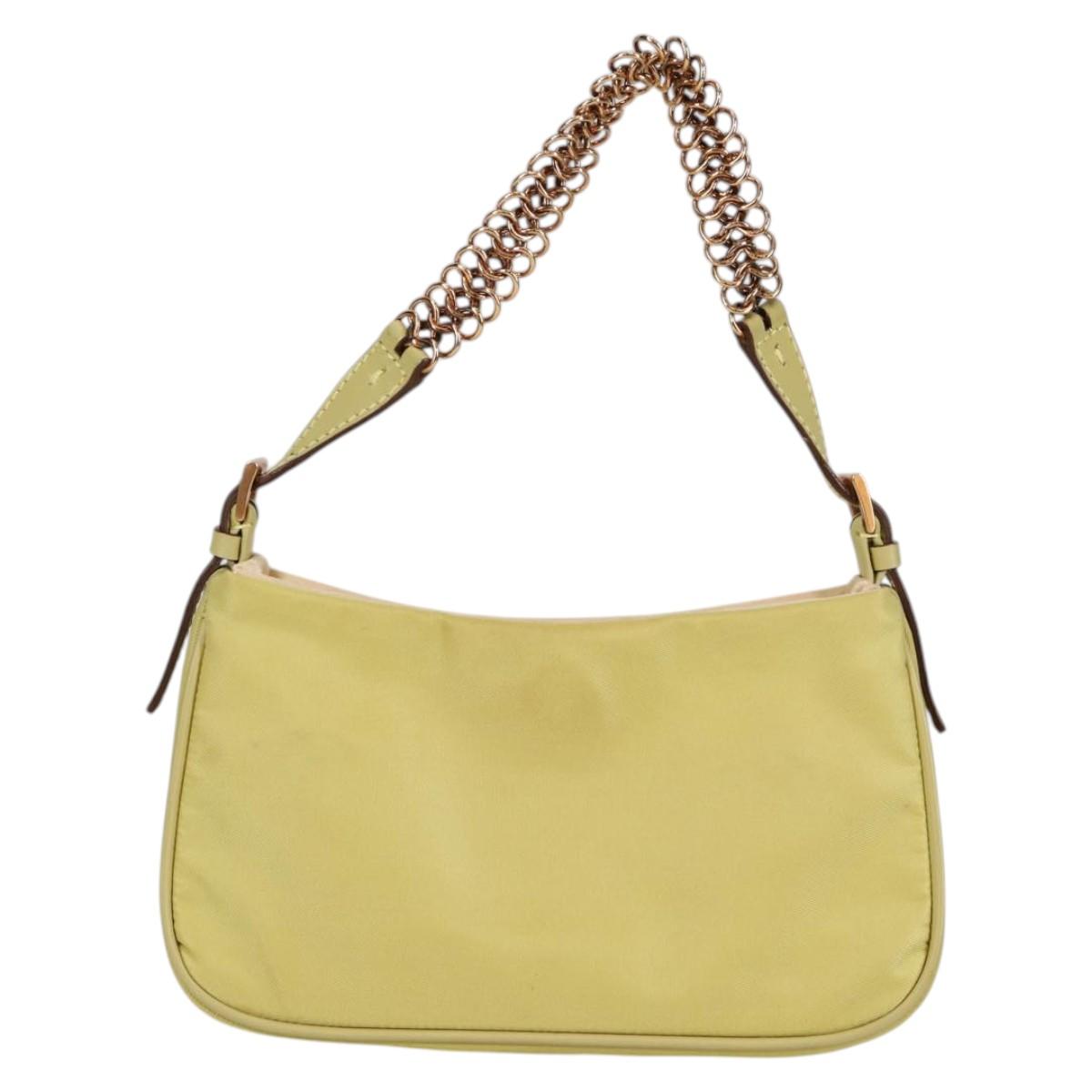 PRADA Chain Hand Bag Nylon Yellow Gold Auth 139937V