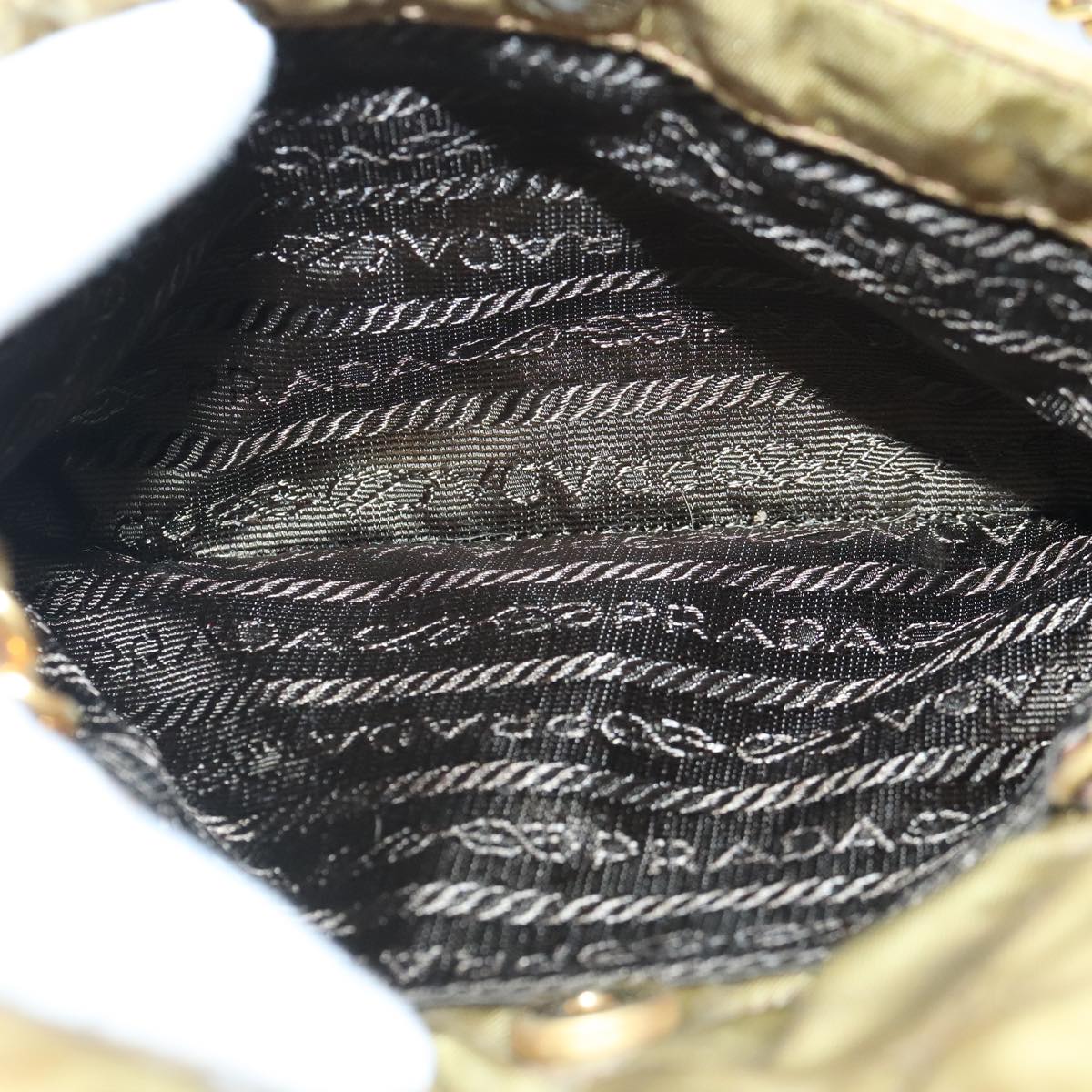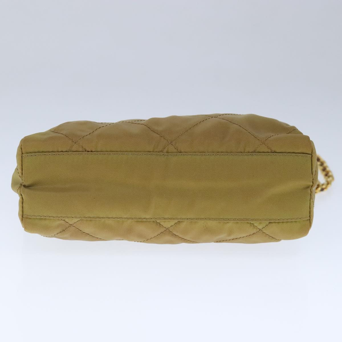 PRADA Chain Shoulder Bag Nylon Beige Gold Auth ar12953