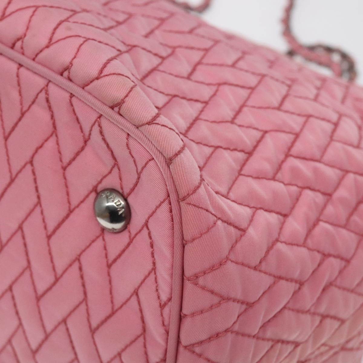 PRADA Chain Tote Bag Nylon Pink Silver Auth 128405