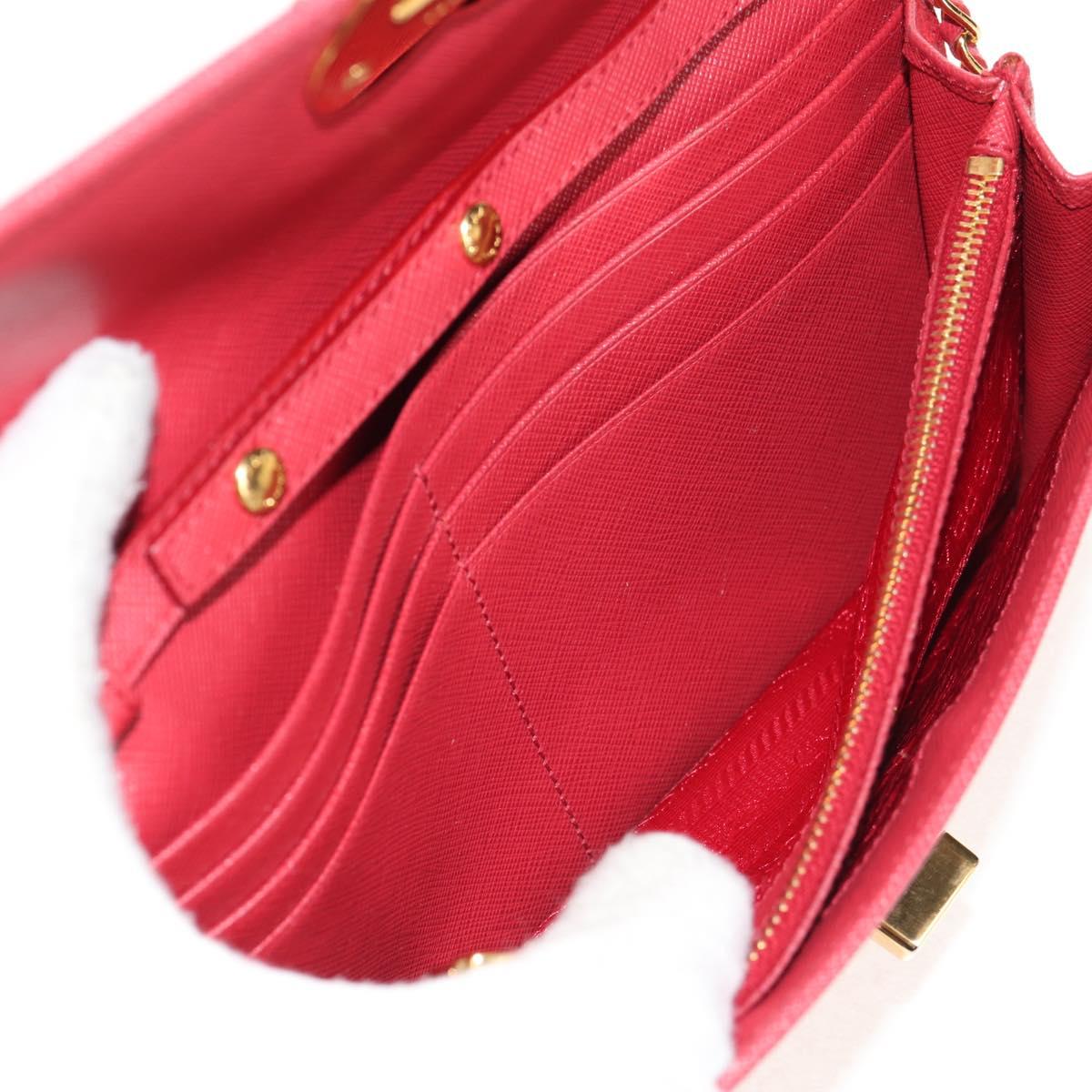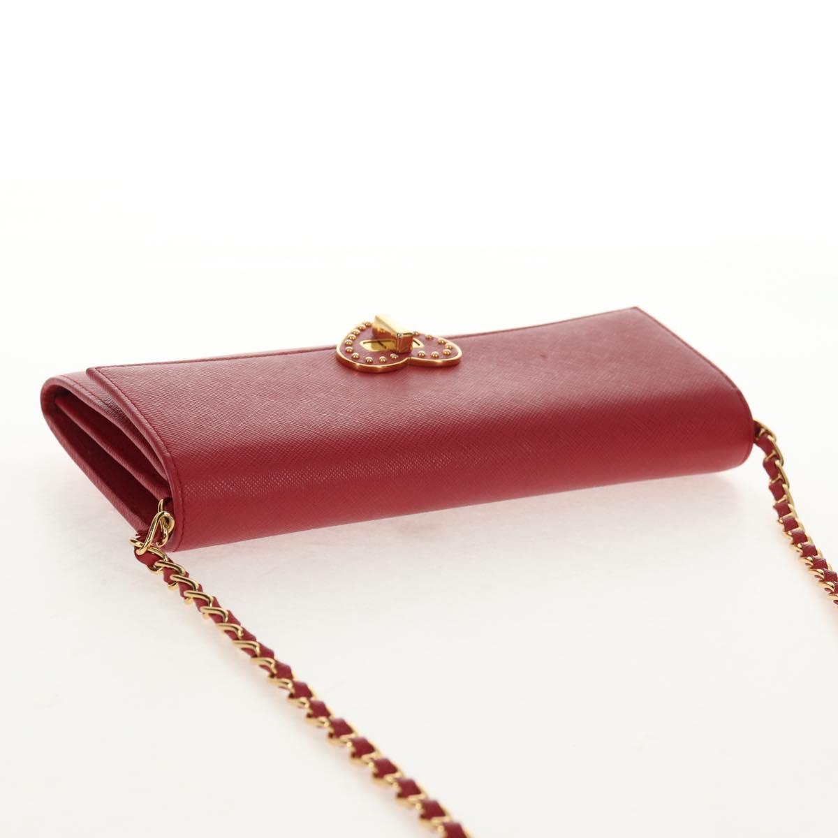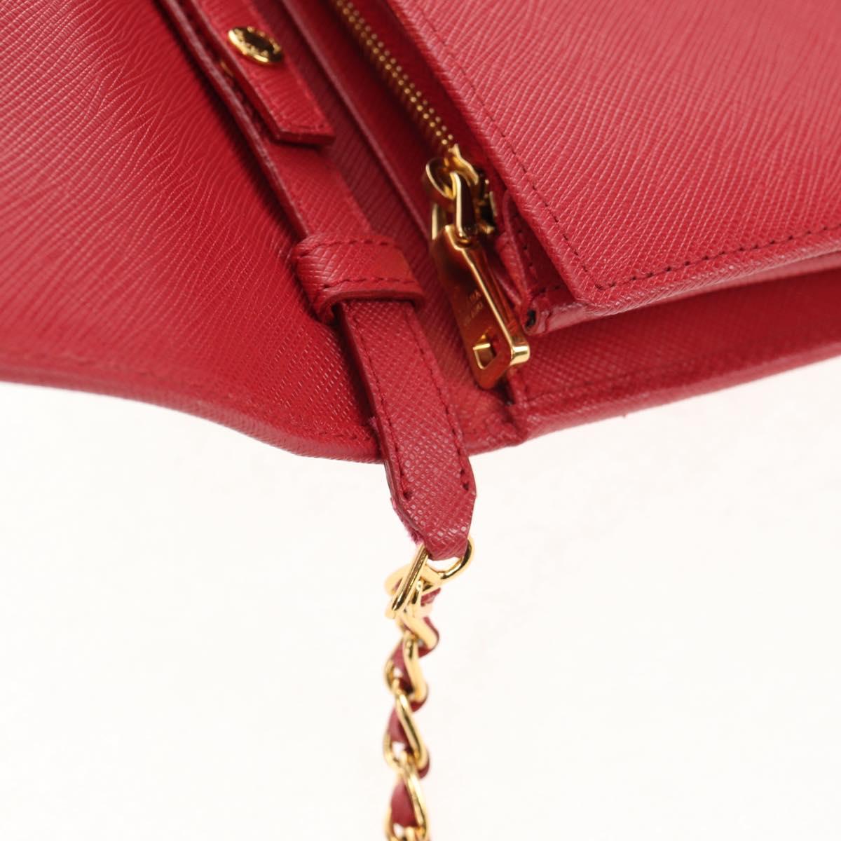 PRADA Chain Shoulder Wallet Safiano leather Red Gold BT770C Auth 145801V