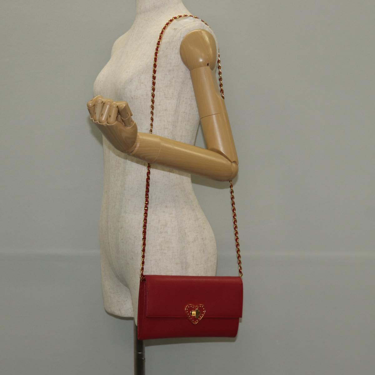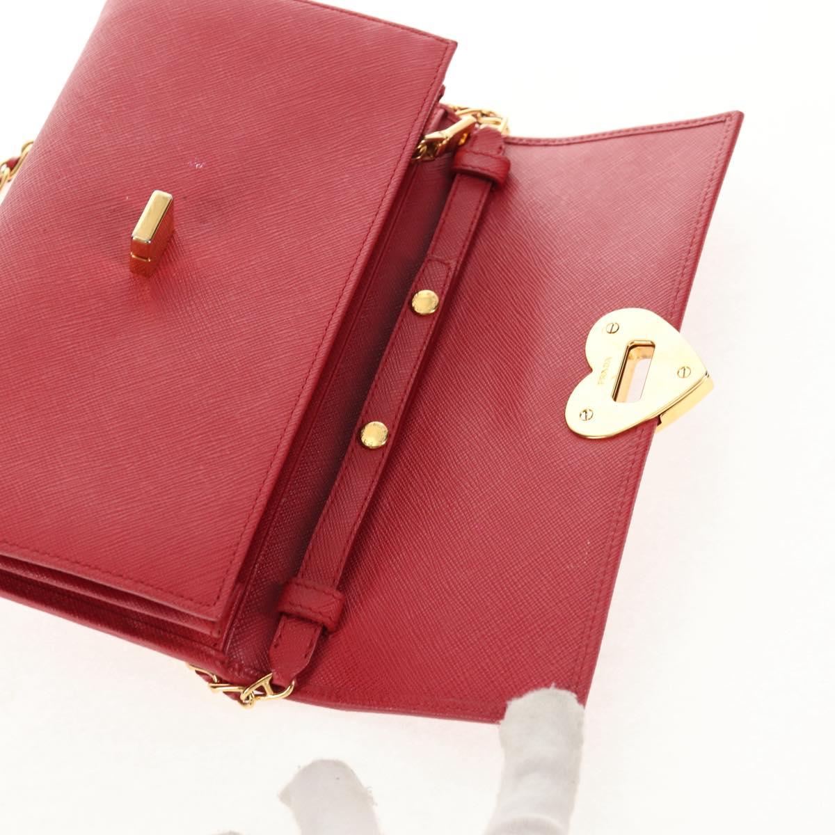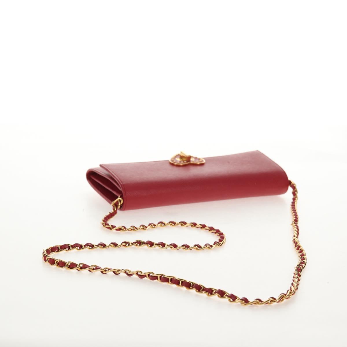 PRADA Chain Shoulder Wallet Safiano leather Red Gold BT770C Auth 145801V