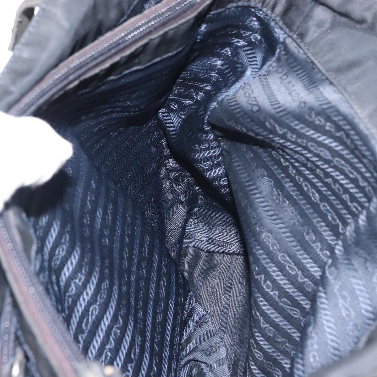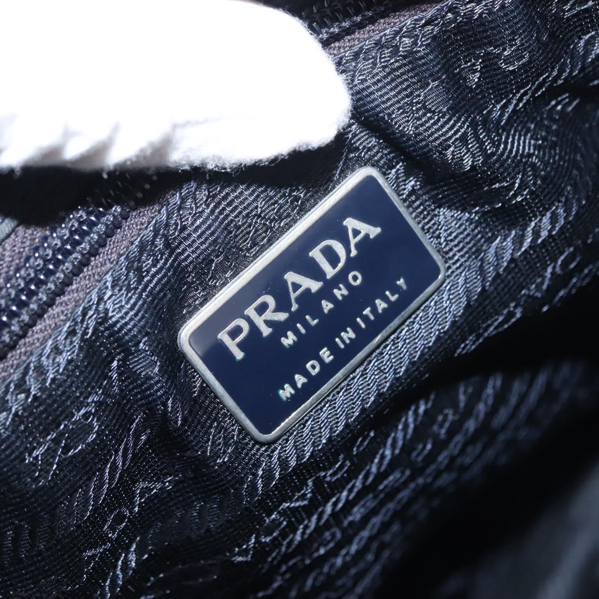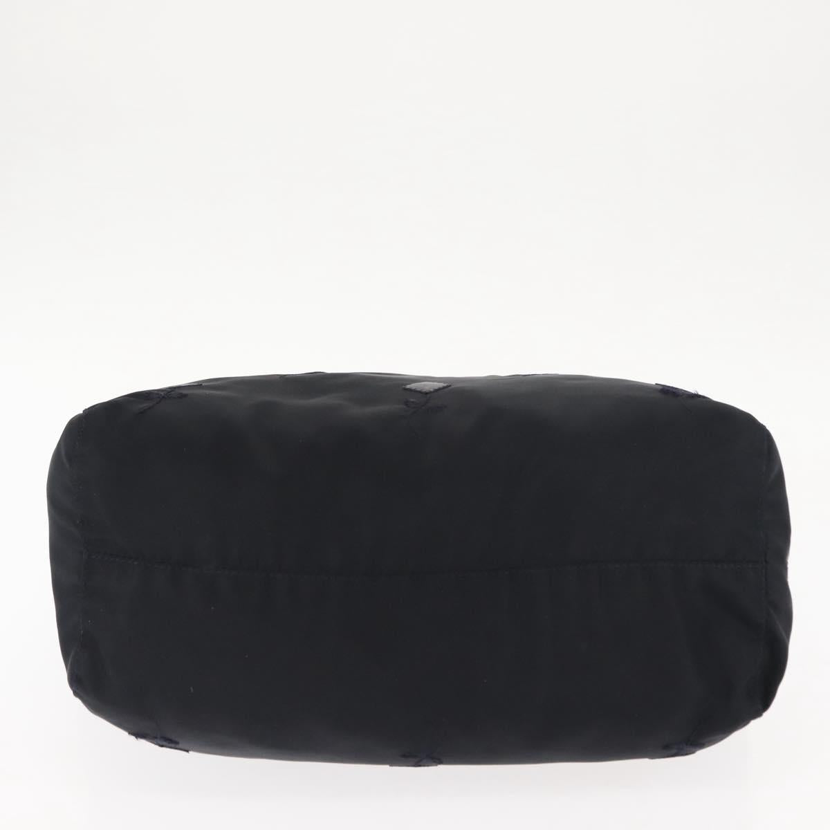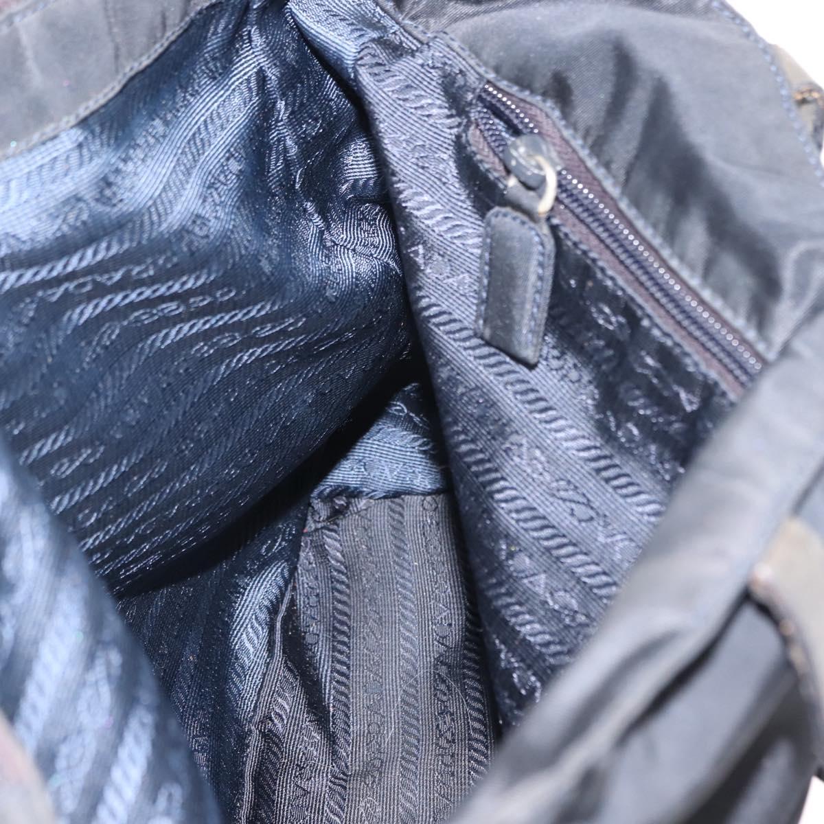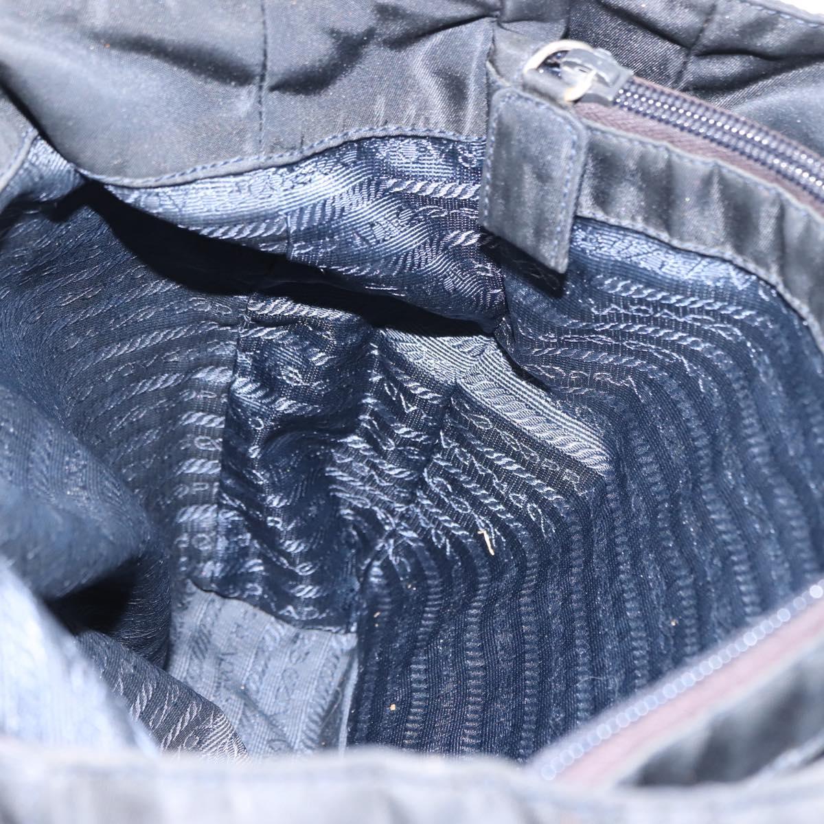PRADA Flower Embroidery Tote Bag Nylon Black Silver Auth bs30015