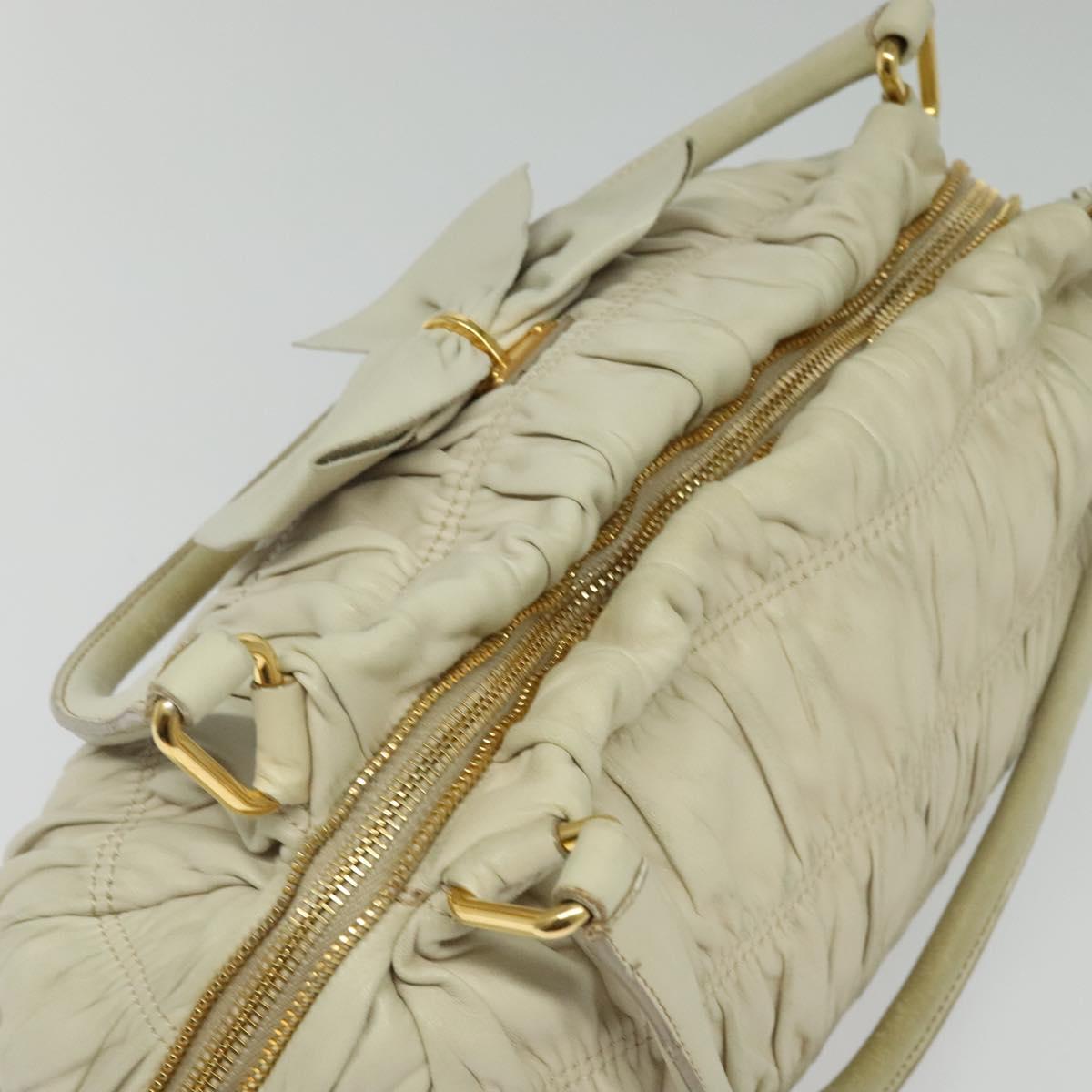 PRADA Gathered Shoulder Bag Leather Light Beige Gold Auth bs29311