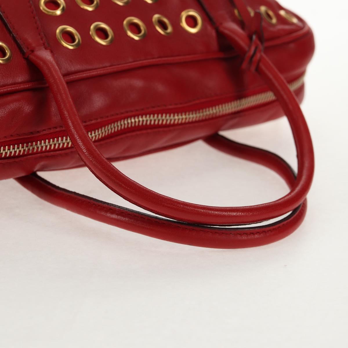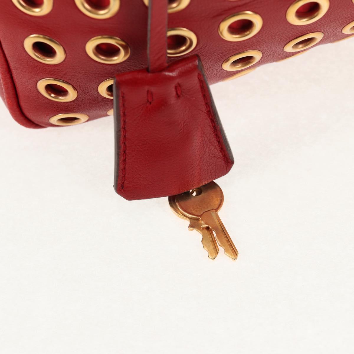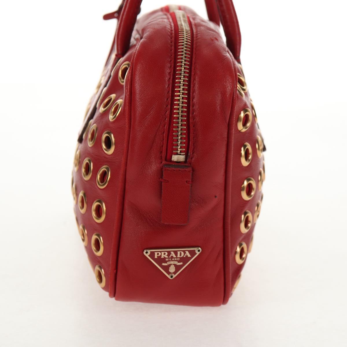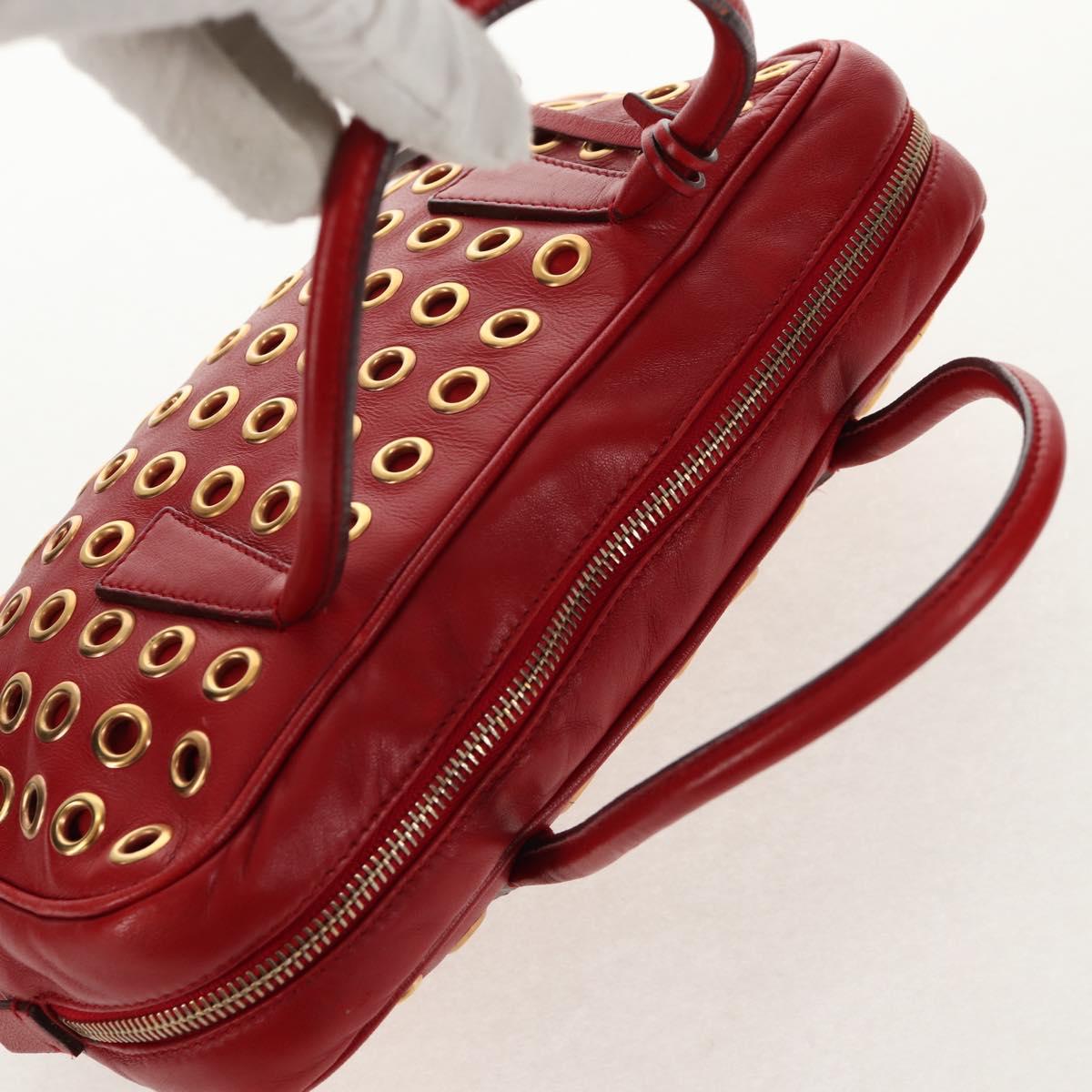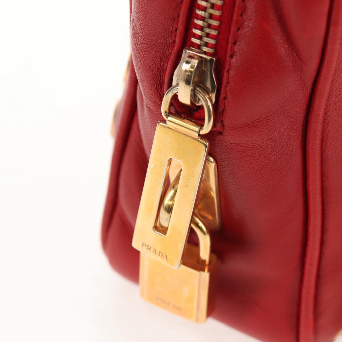 PRADA Hand Bag Leather Red Gold Auth 144642V