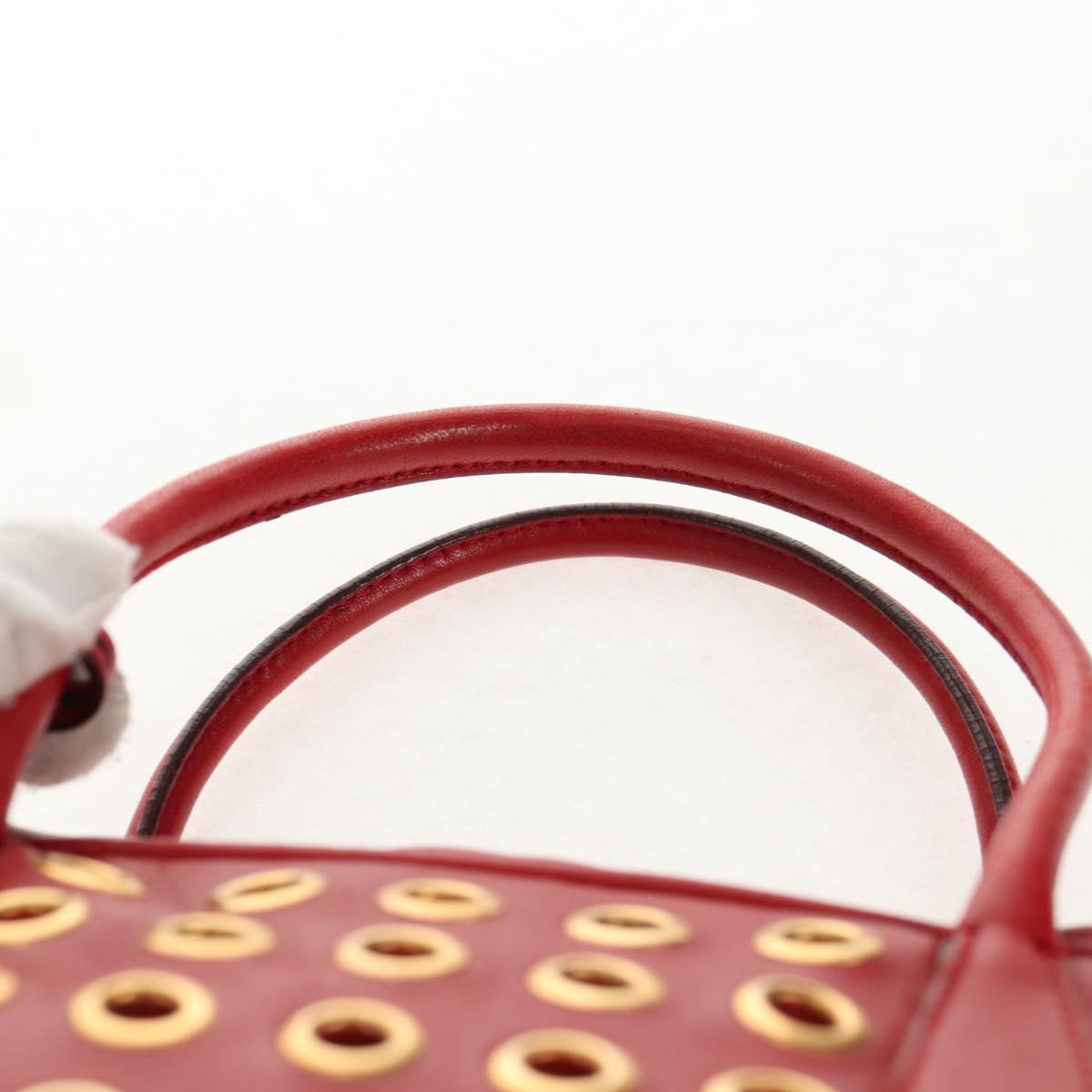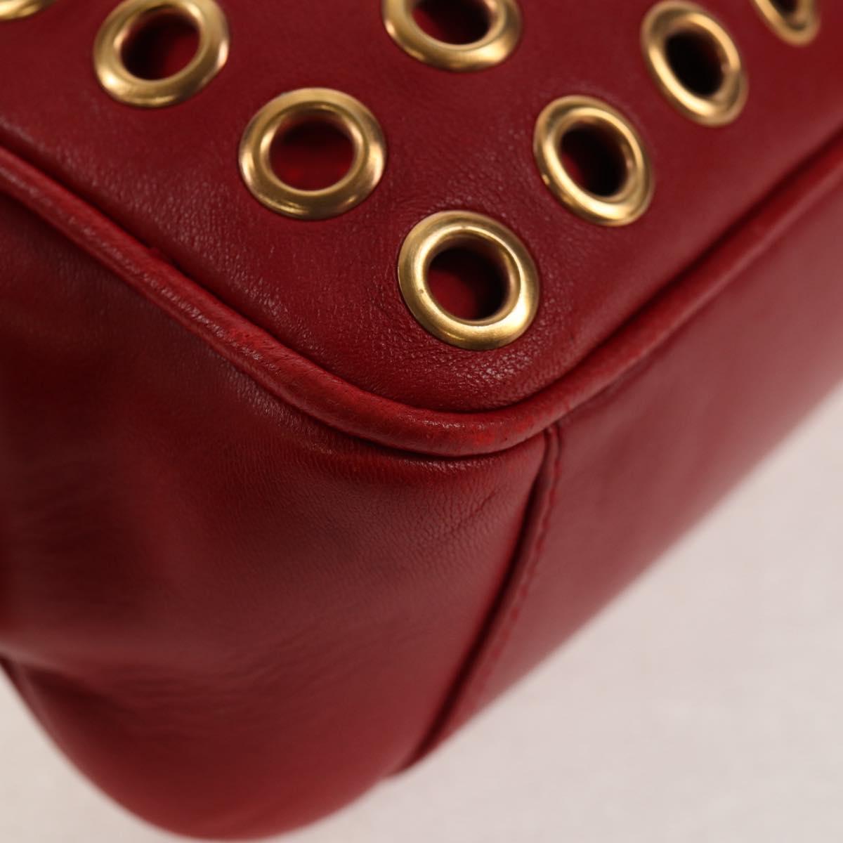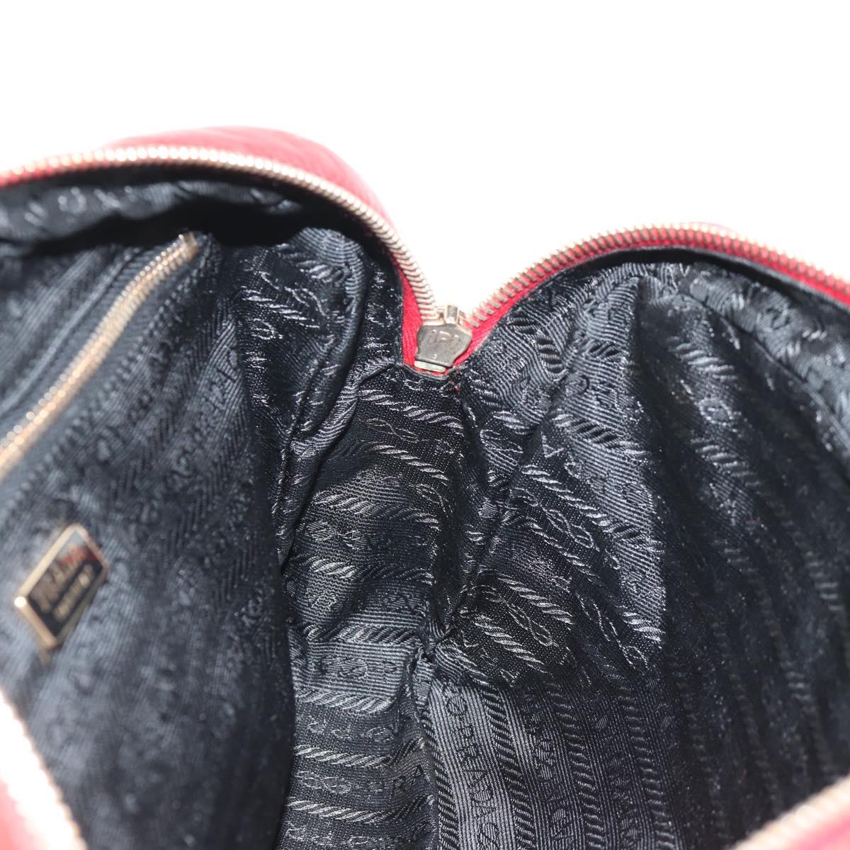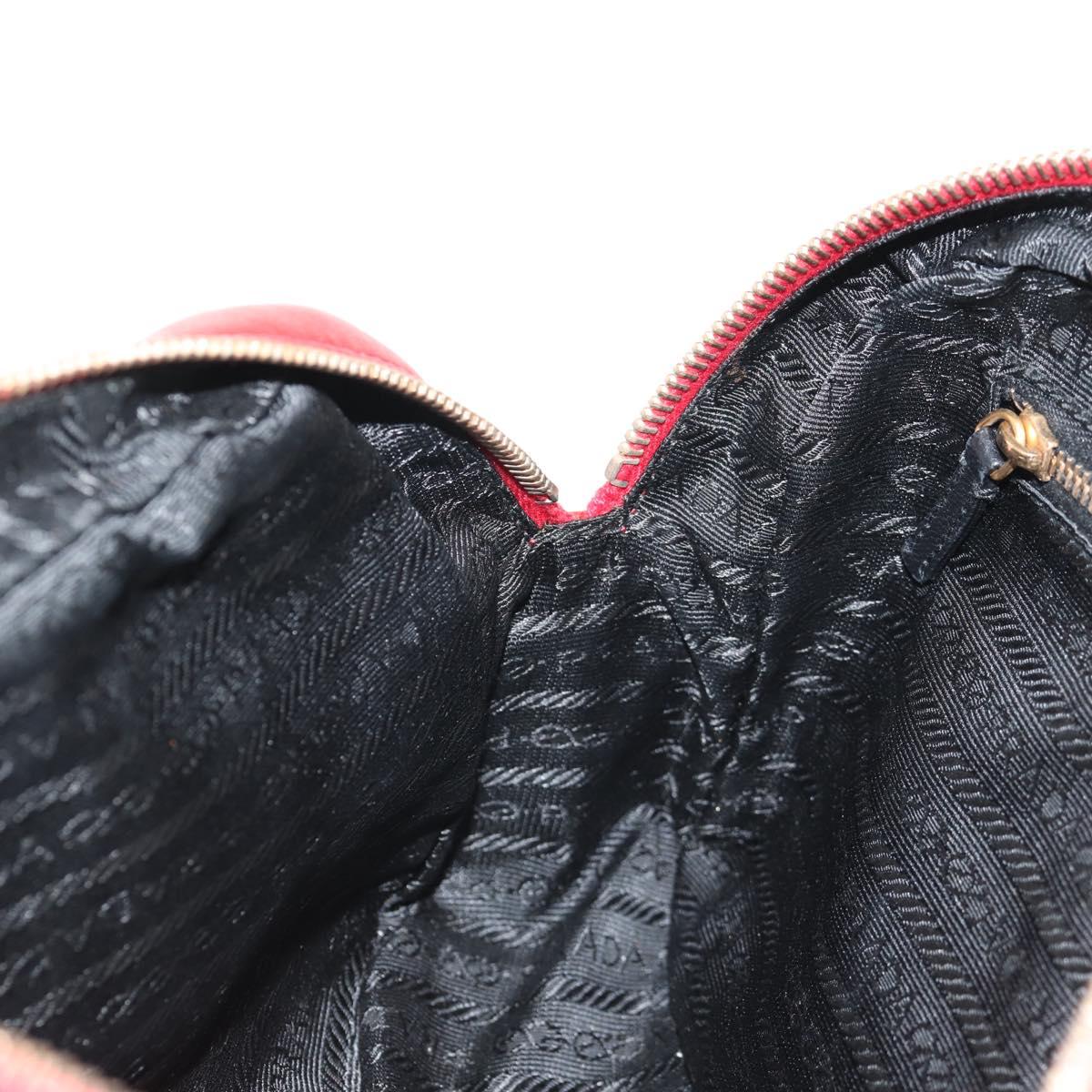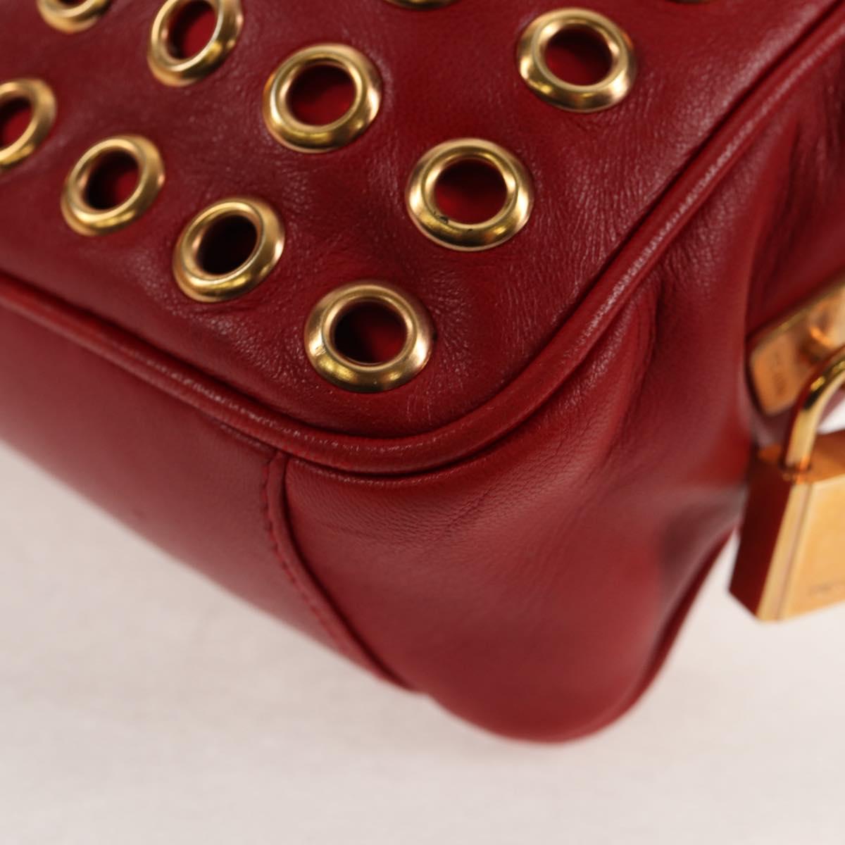 PRADA Hand Bag Leather Red Gold Auth 144642V