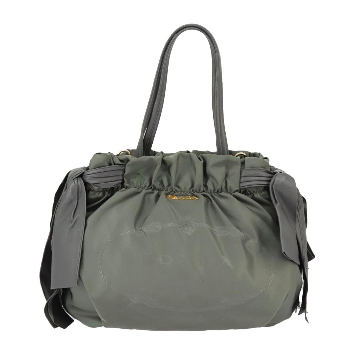 PRADA Hand Bag Nylon 2way Khaki Gold Auth 102289