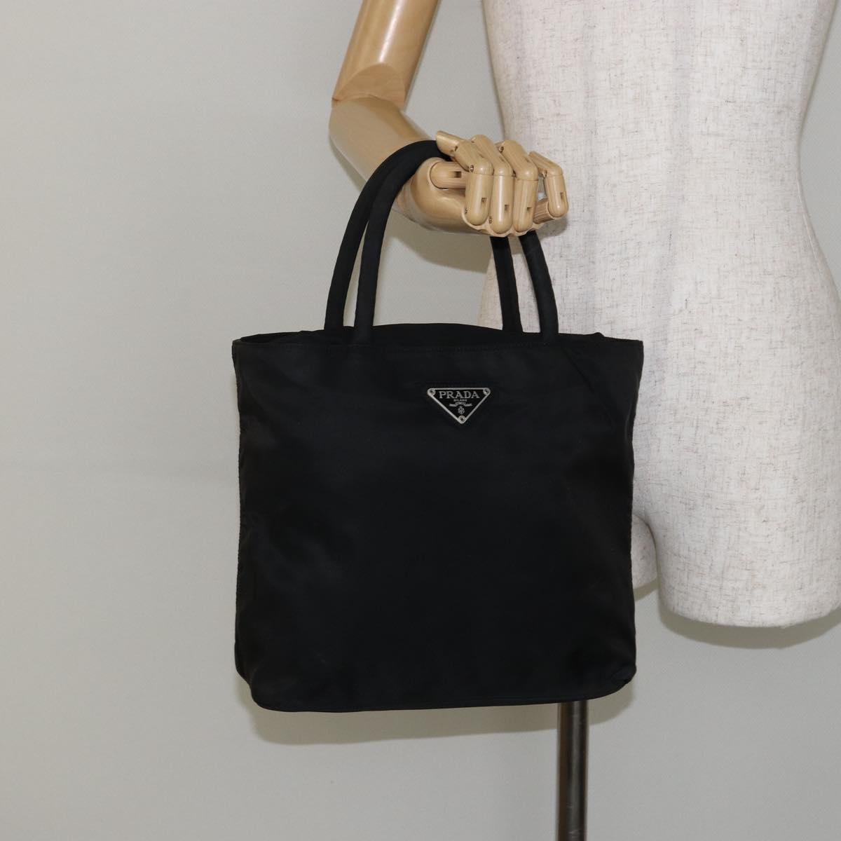 PRADA Hand Bag Nylon Black Gold Auth bs29774