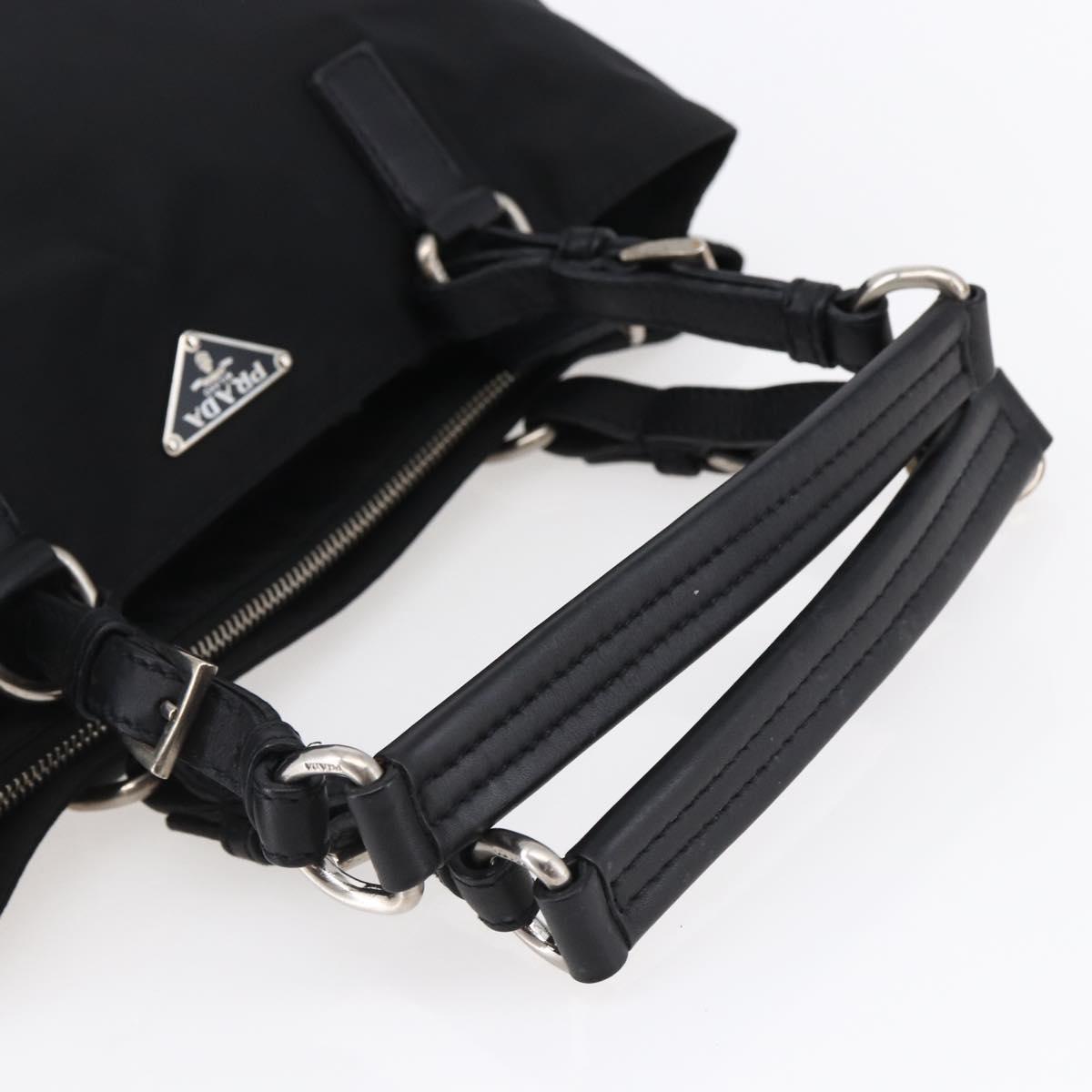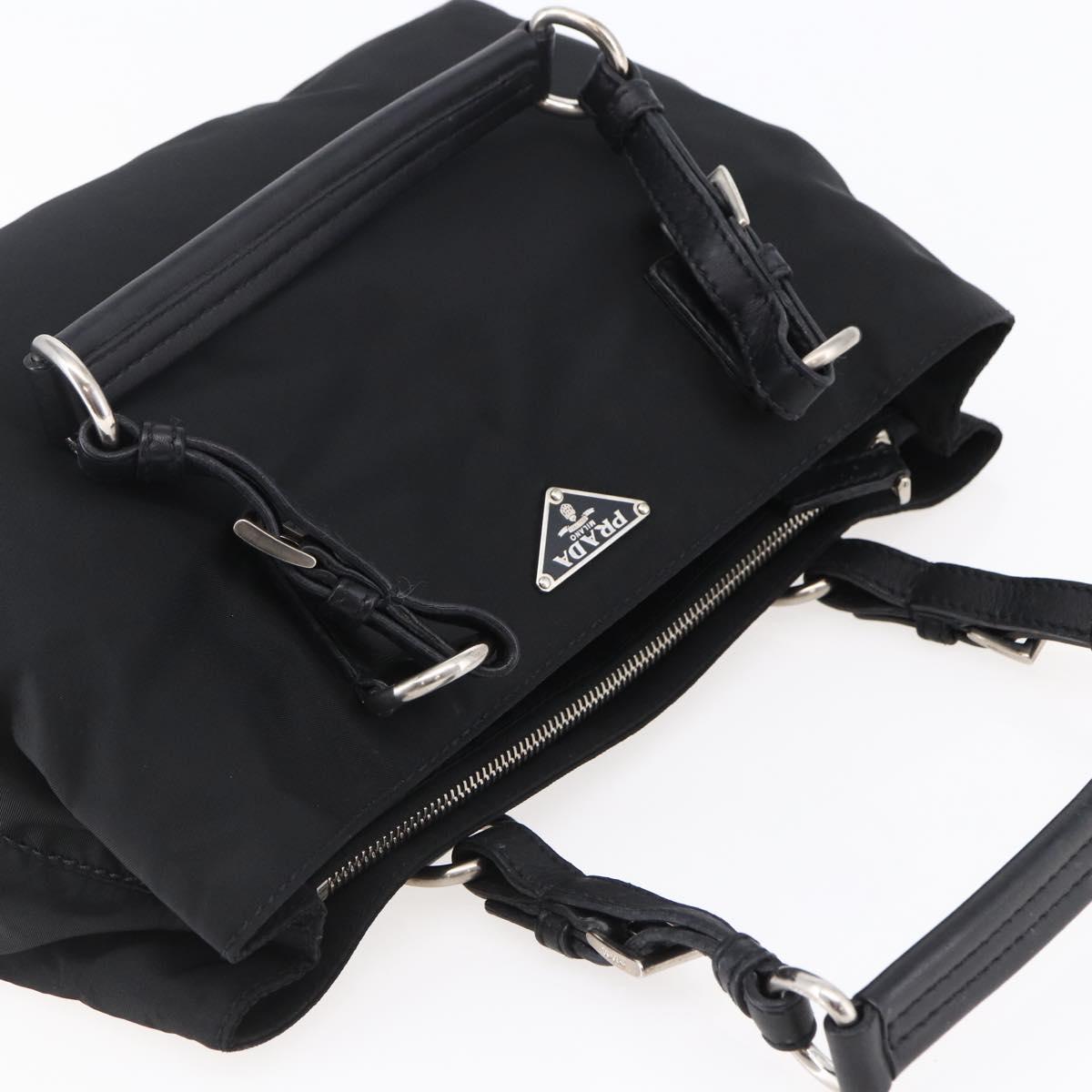 PRADA Hand Bag Nylon Black Silver Auth ep11161