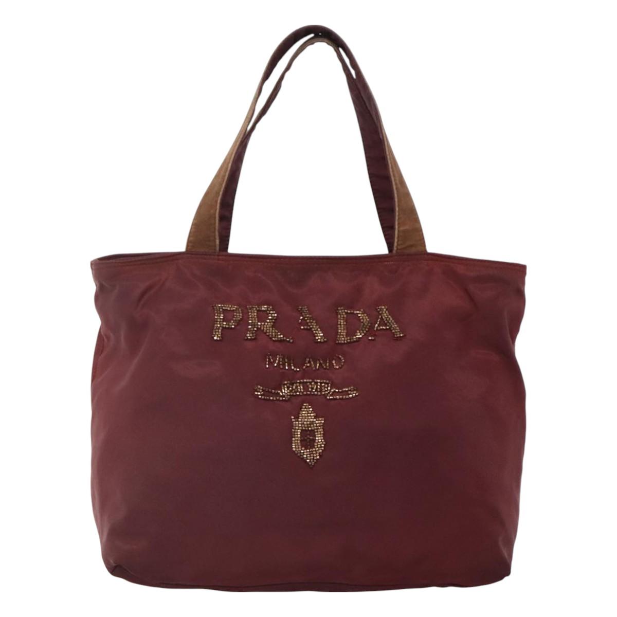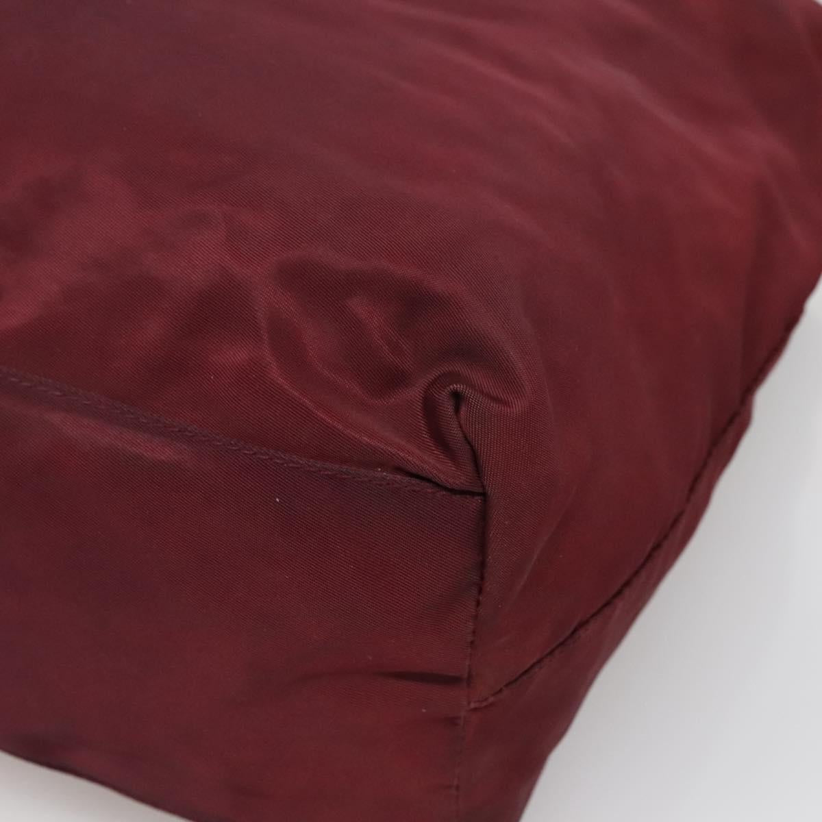 PRADA Hand Bag Nylon Bordeaux Silver Auth bs27436