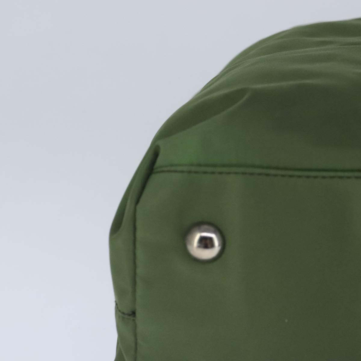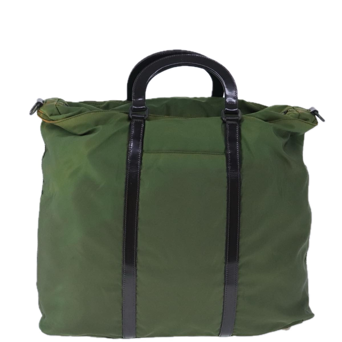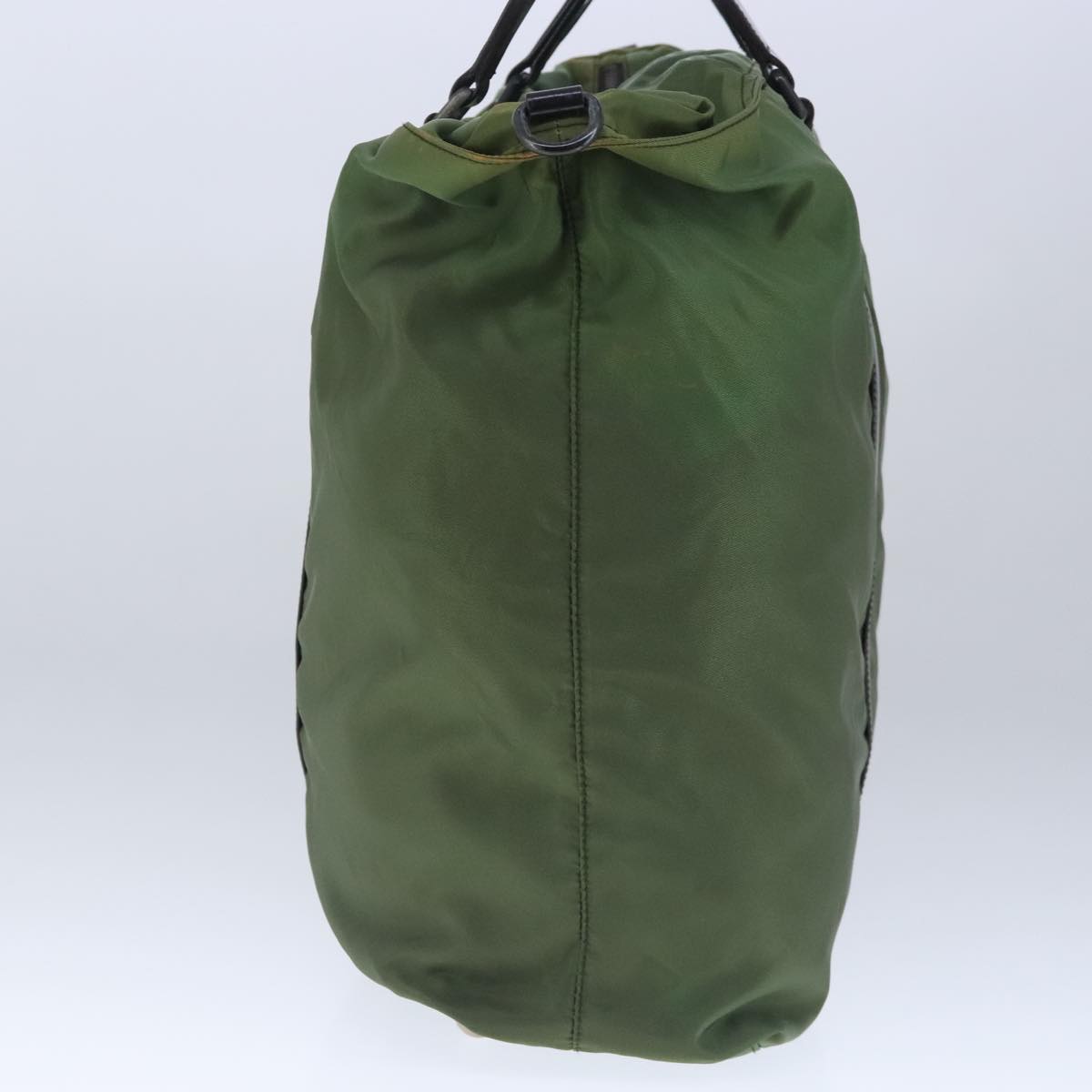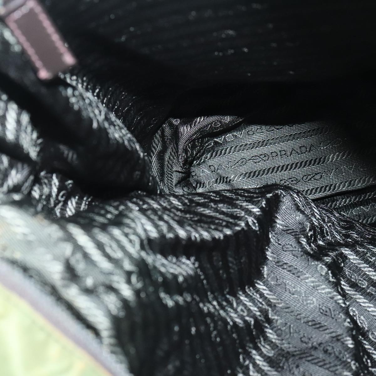 PRADA Hand Bag Nylon leather 2way Khaki Dark Brown Silver Auth 102248