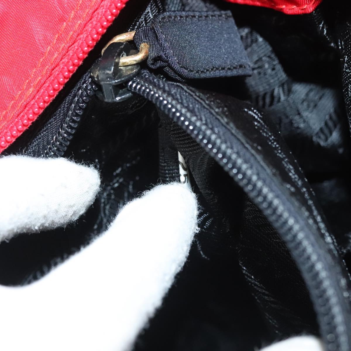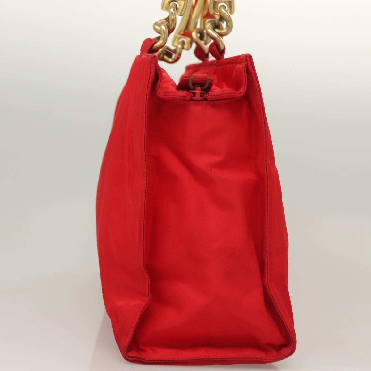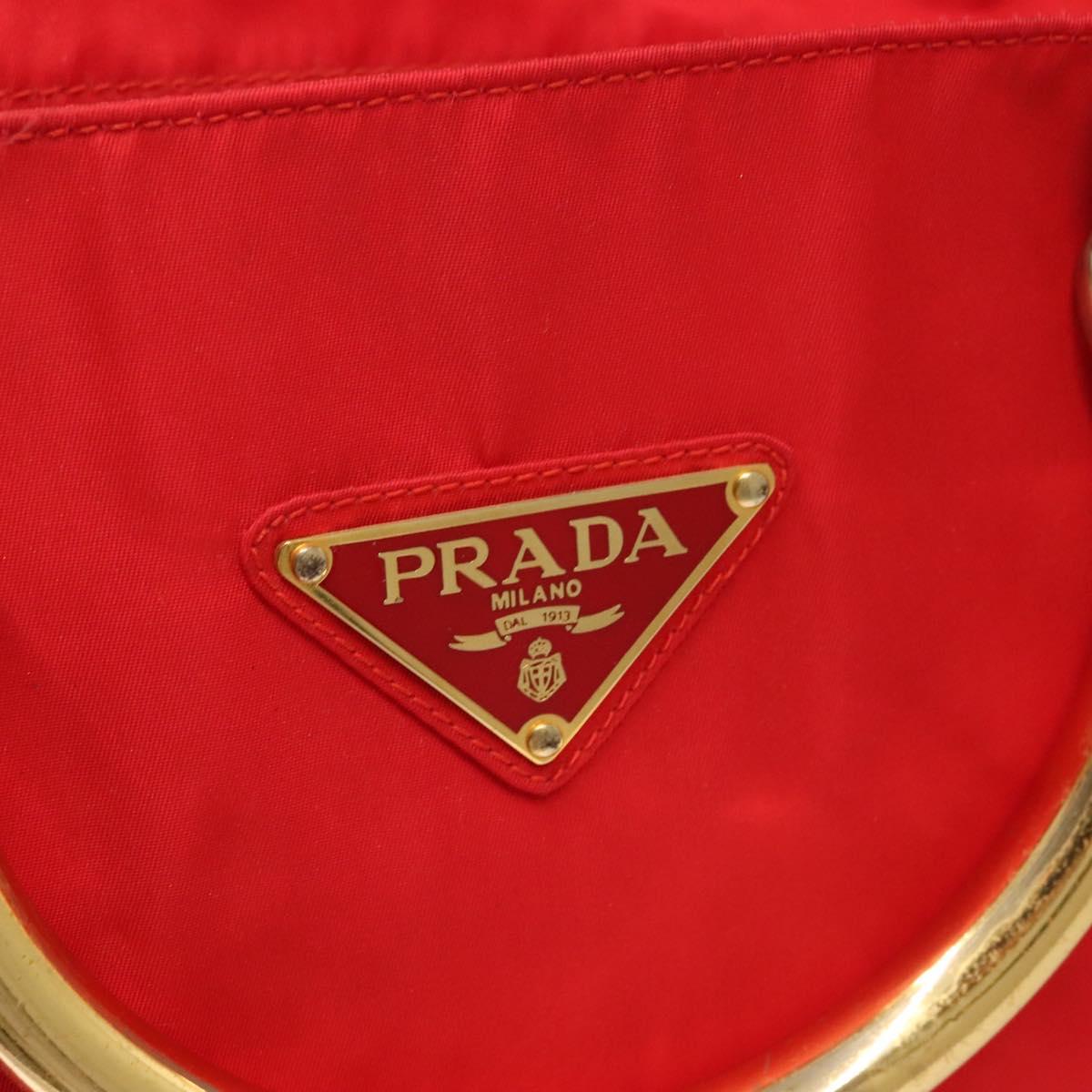 PRADA Hand Bag nylon metal Red Gold Auth 130992