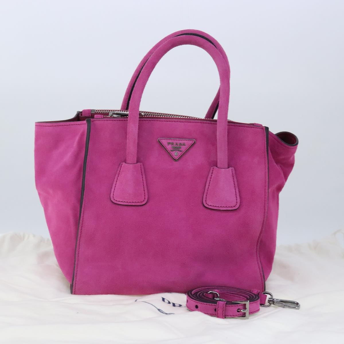 PRADA Hand Bag Suede 2way Pink Silver Auth ki5171V