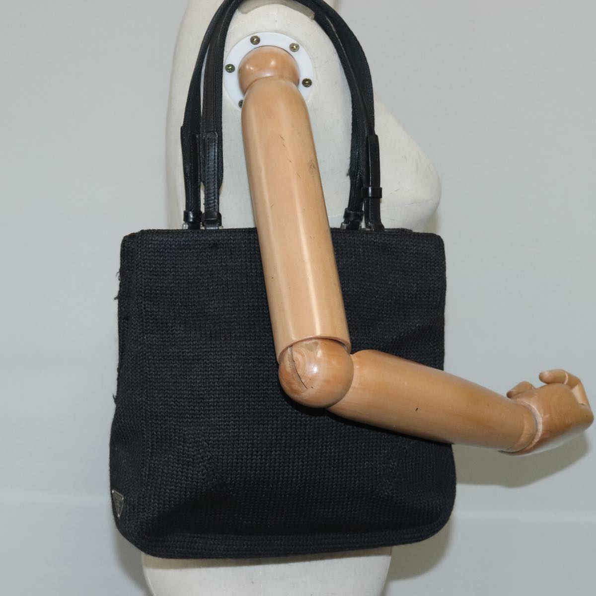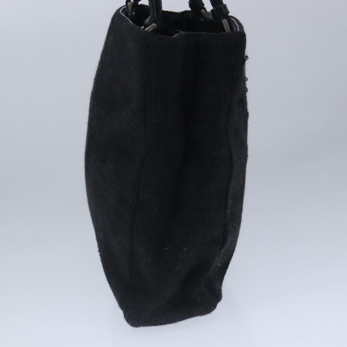 PRADA Hand Bag Wool Black Auth 102662